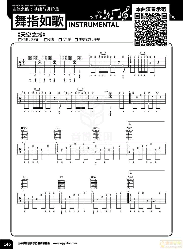 - 天空之城指弹吉他谱 久石让 天空之城单音版吉他谱