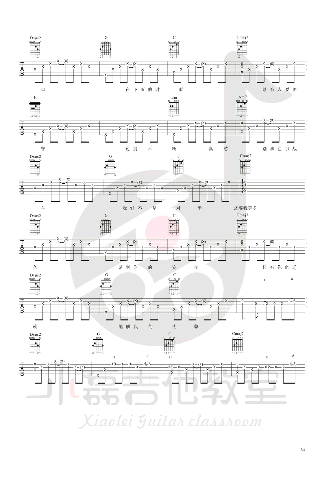 - 给你吉他谱 茶季杨《给你》六线谱 G调弹唱谱 吉