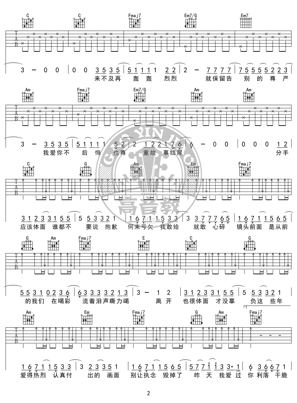 - 告白气球吉他谱_周杰伦《告白气球》六线谱