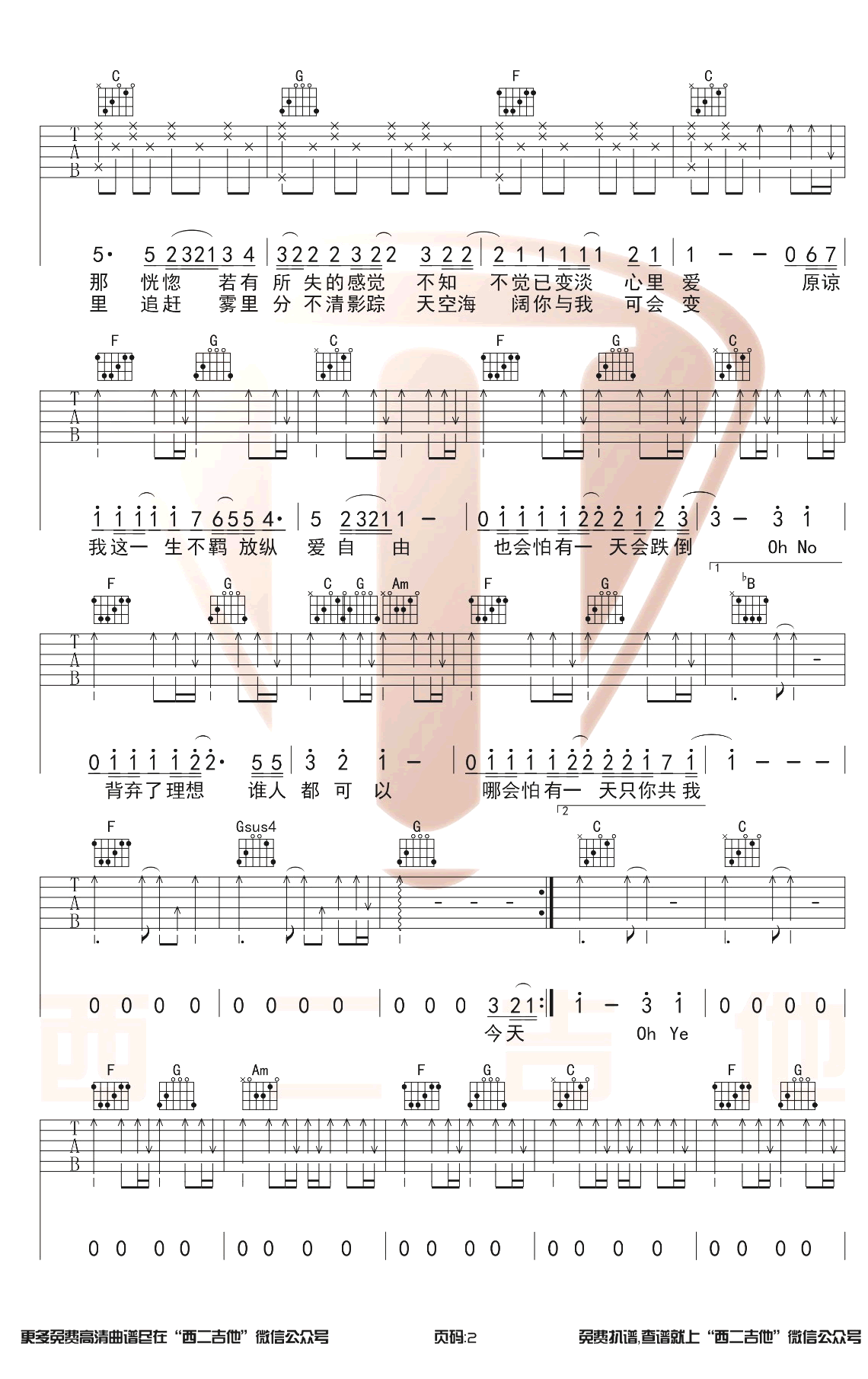 - 山楂树之恋吉他谱_大能人_C调_原版弹唱谱