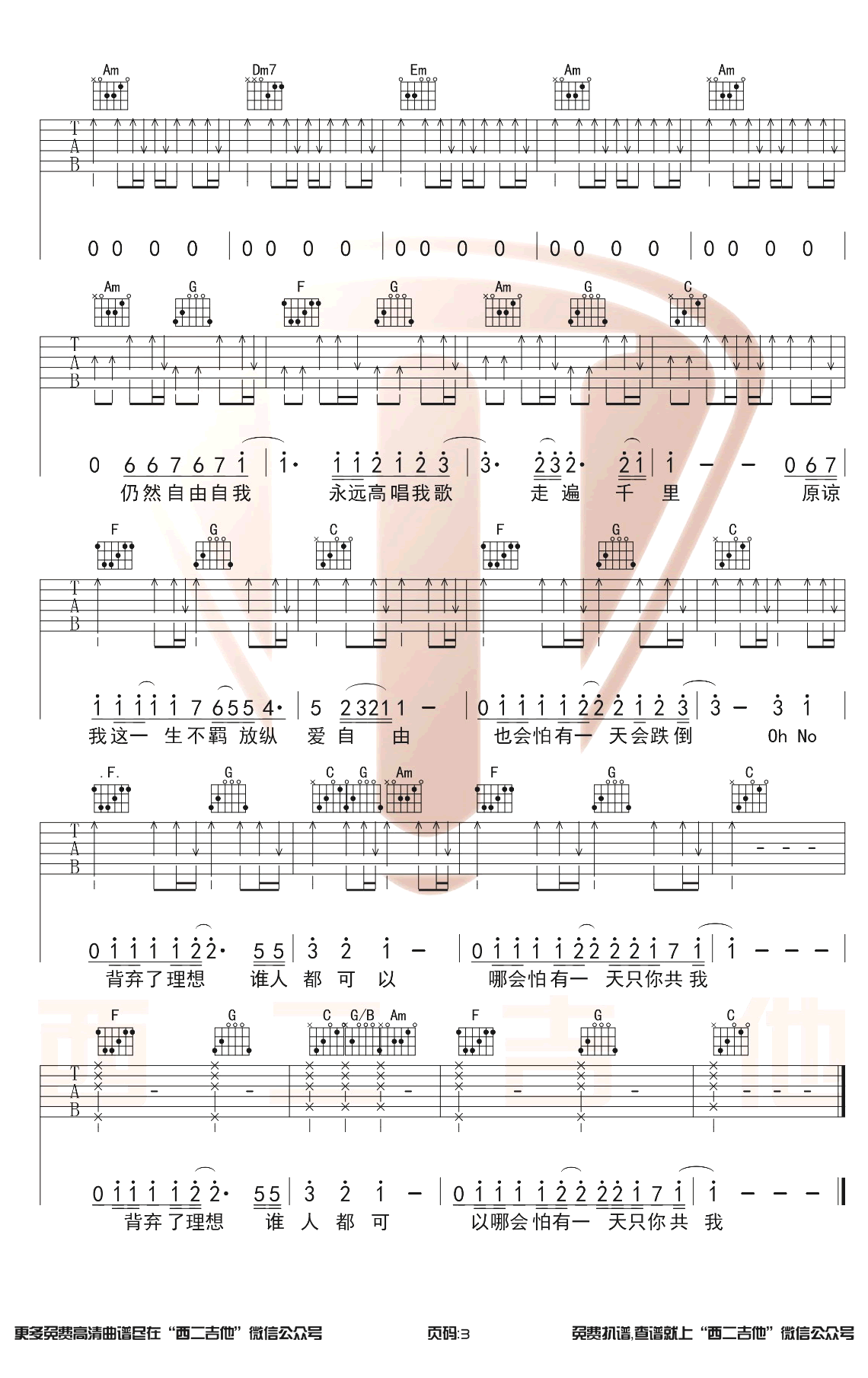 热门吉他谱(图片谱)
