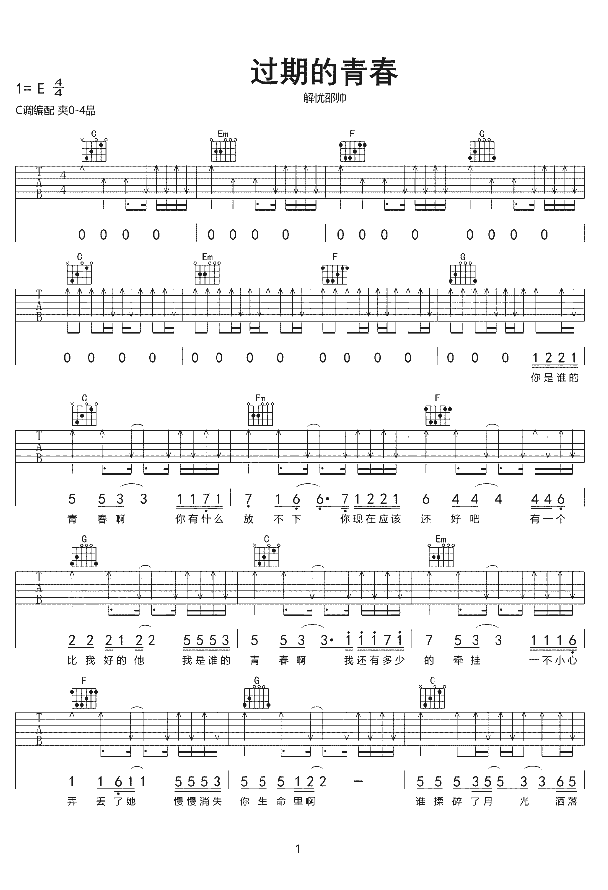 - 过期的青春吉他谱_解忧邵帅_C调_弹唱六线谱