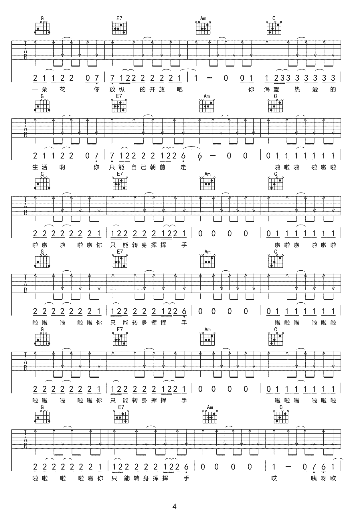 - 平胸女子吉他谱_枯木逢春_C调_弹唱六线谱