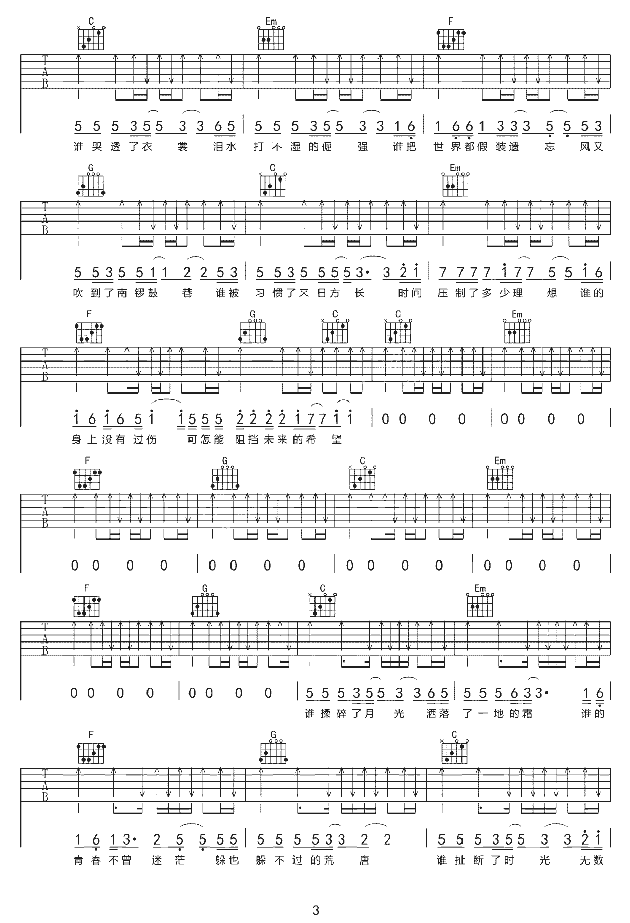 - 北区楼四吉他谱_刘昊霖_C调_弹唱六线谱