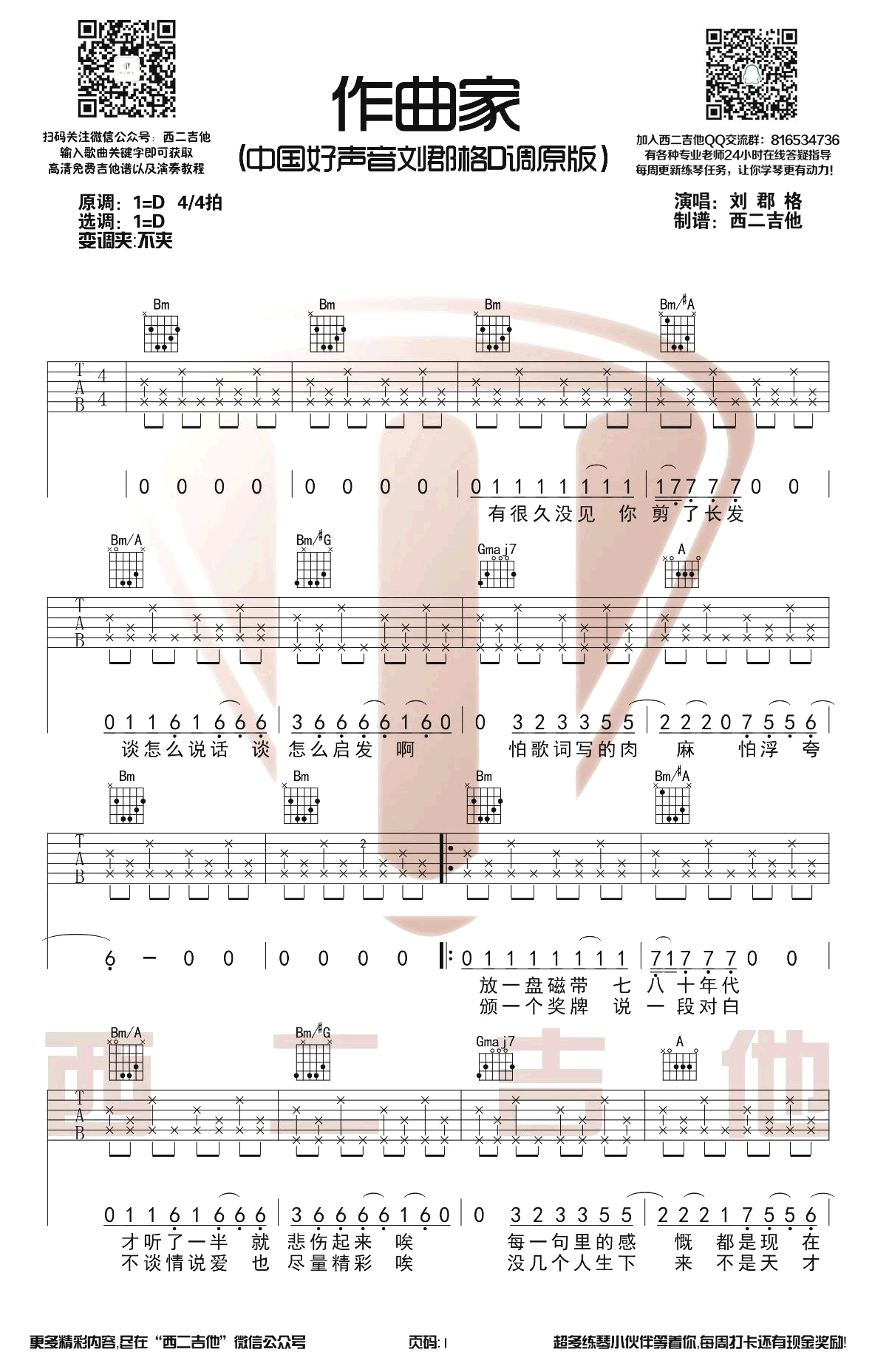 - 作曲家吉他谱_刘郡格_原版弹唱谱_教学视频