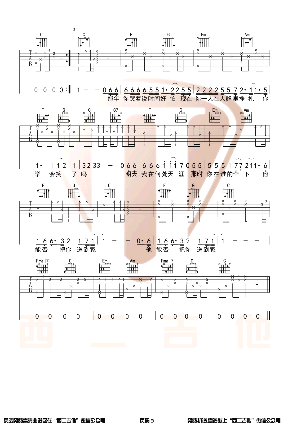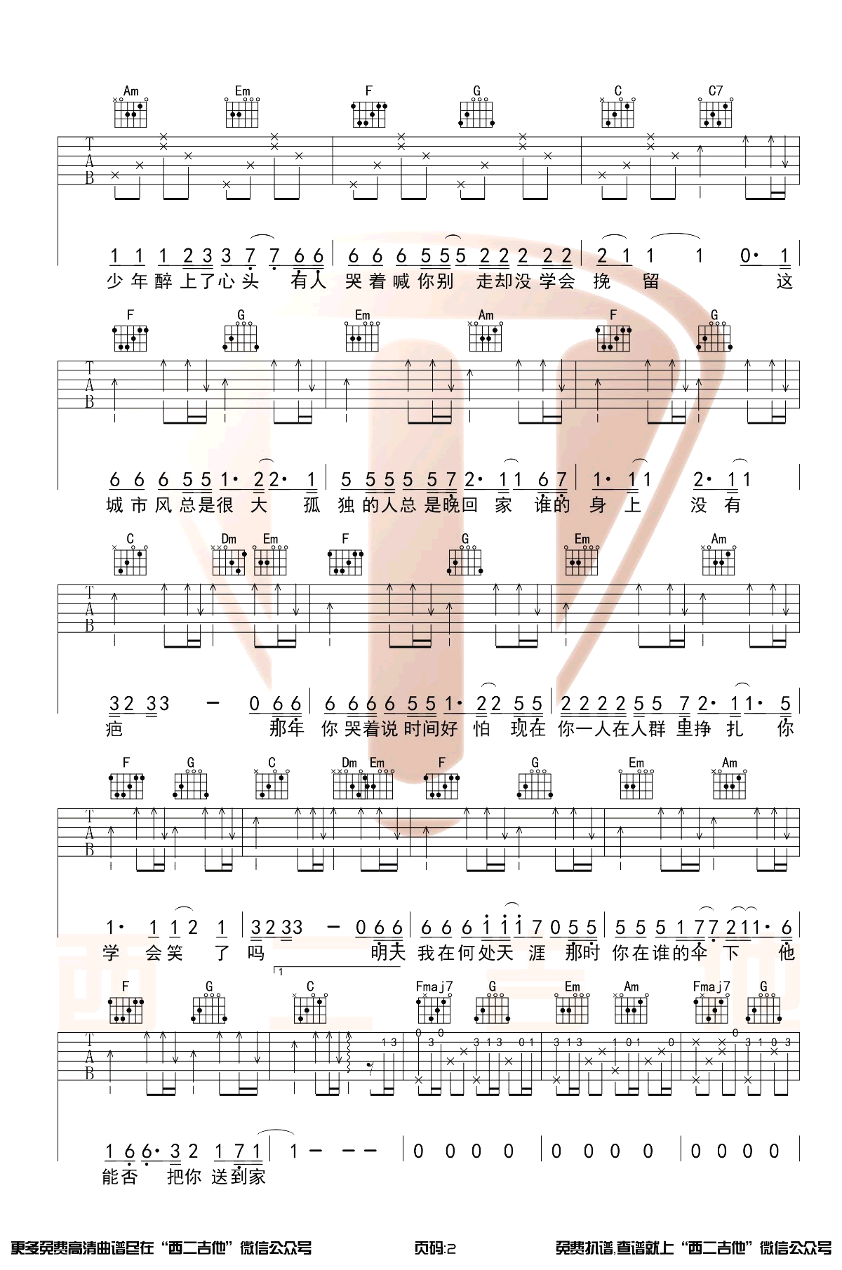 - 山楂树之恋吉他谱_大能人_C调_原版弹唱谱