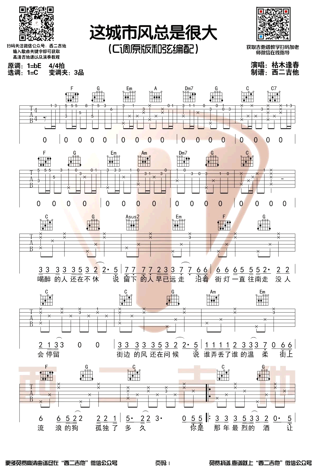 - 这城市风总是很大吉他谱_枯木逢春_C调_吉他教学视频