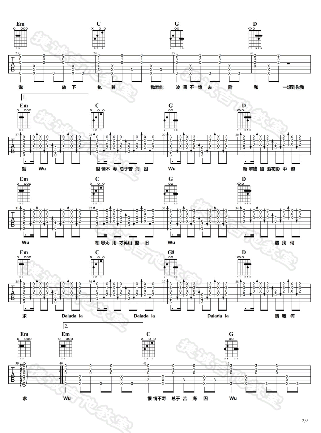 - 余情未了吉他谱_魏新雨_G调弹唱谱_抖音歌曲