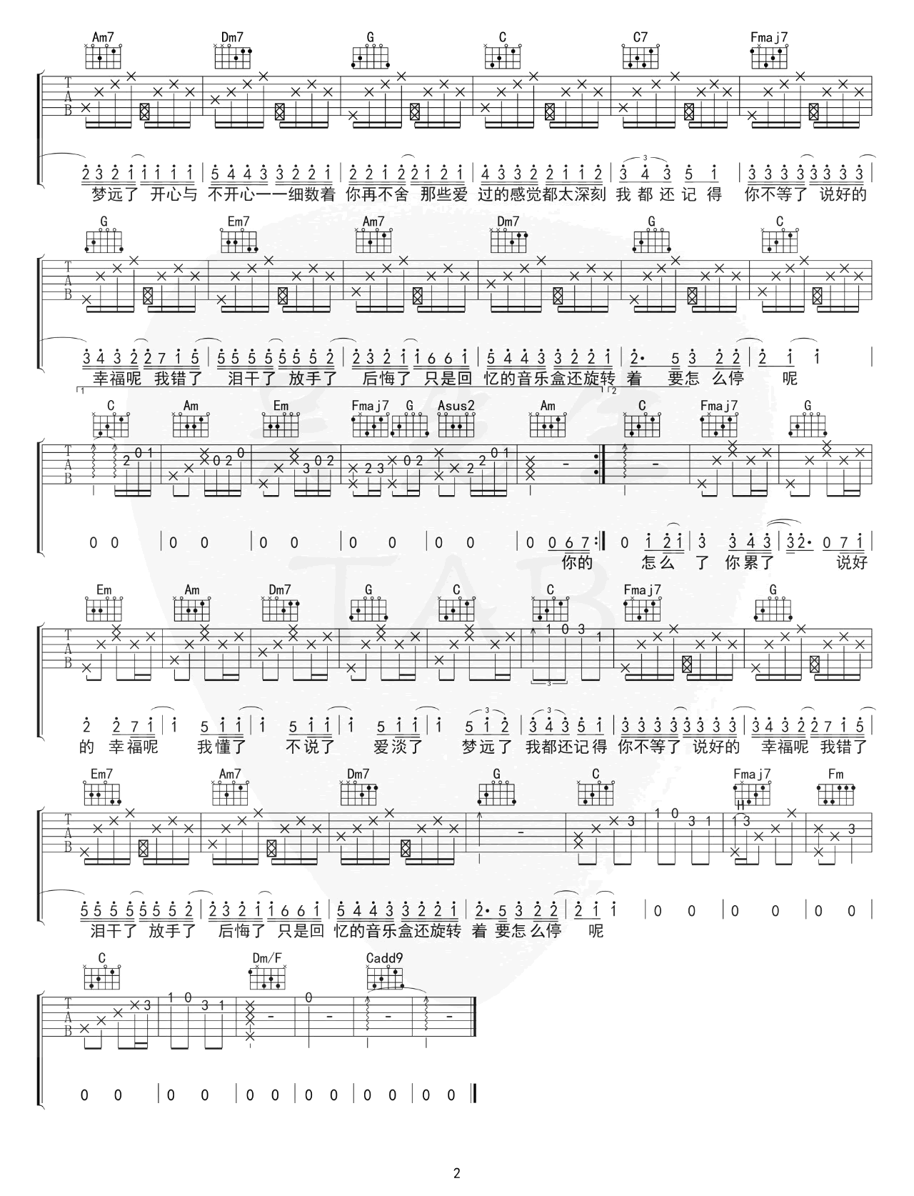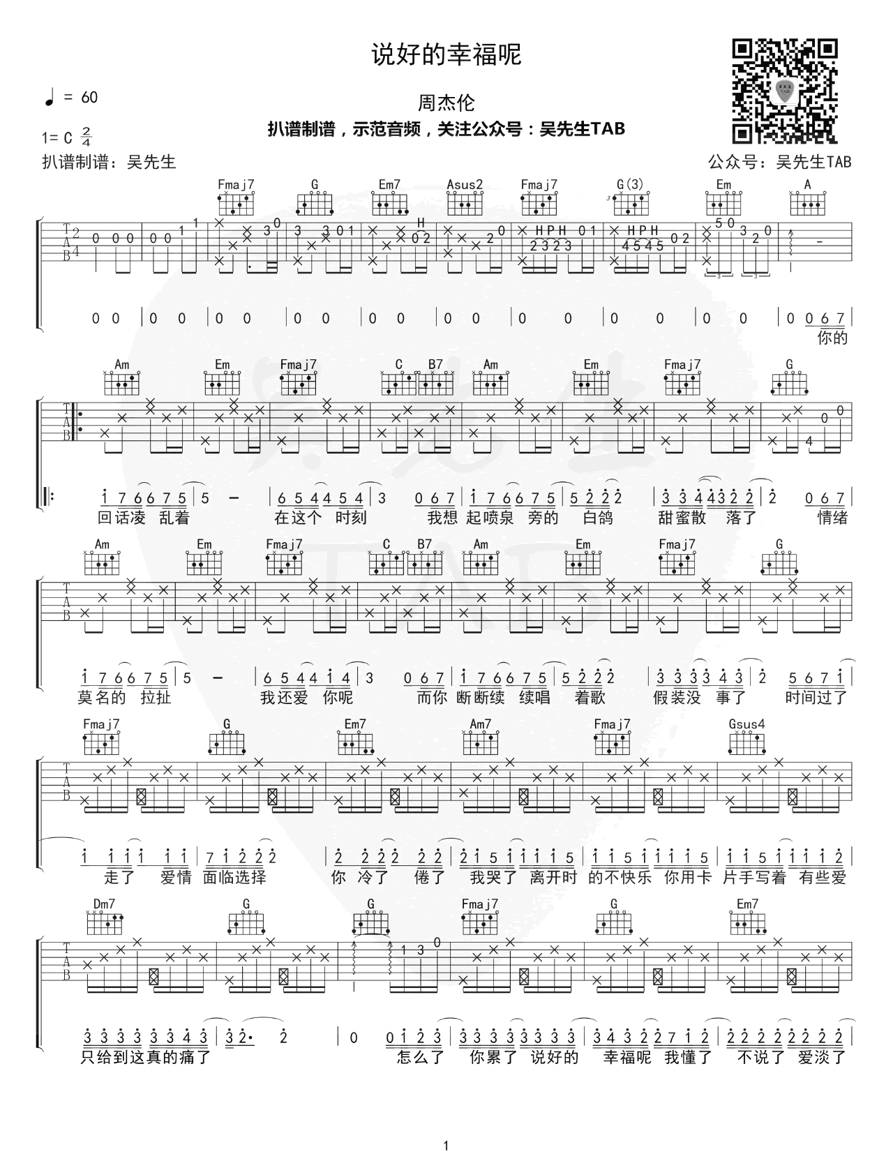 - 说好的幸福呢吉他谱_周杰伦_C调弹唱谱_图片谱