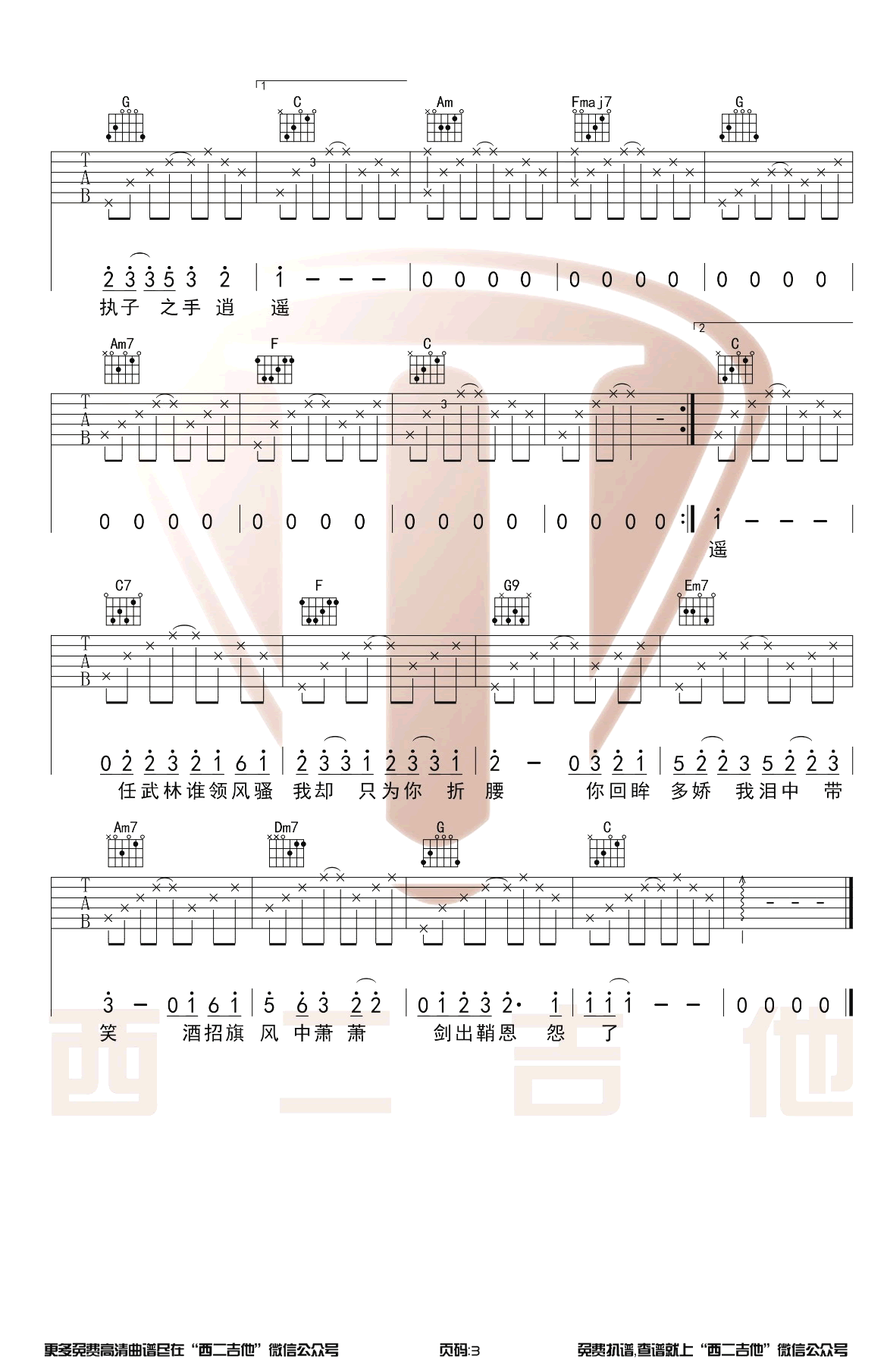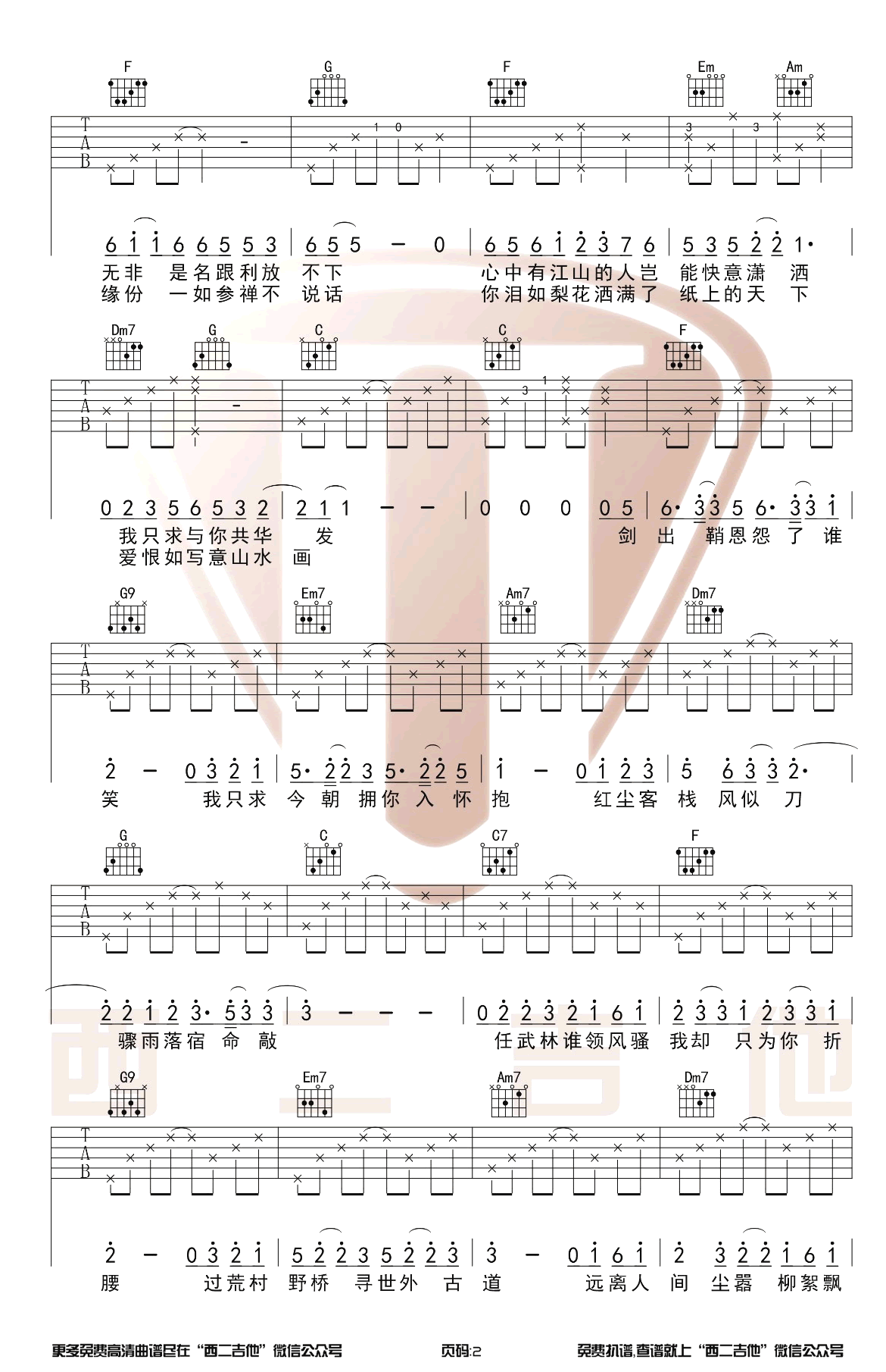 - 山楂树之恋吉他谱_大能人_C调_原版弹唱谱