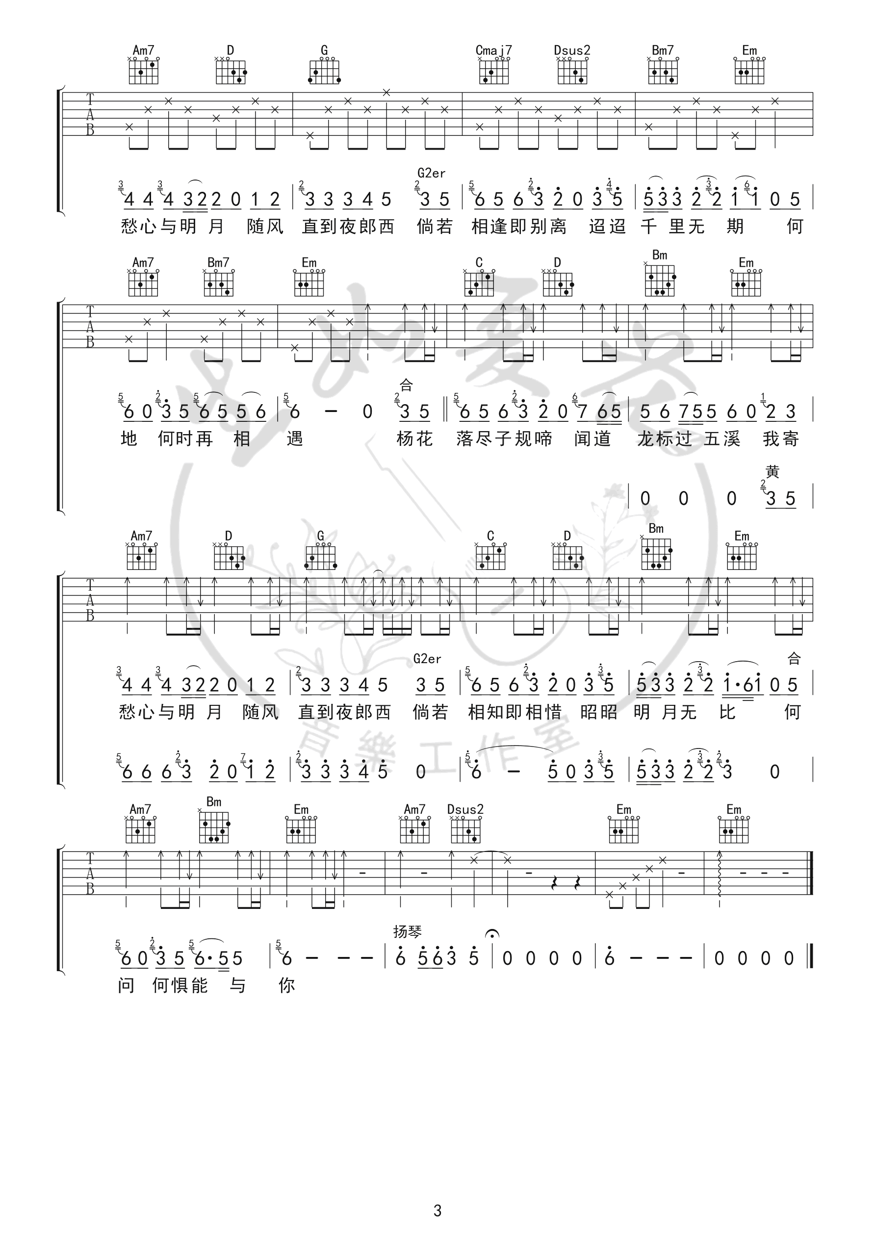 - 杨花落尽子规啼吉他谱_黄诗扶_G调_弹唱六线谱