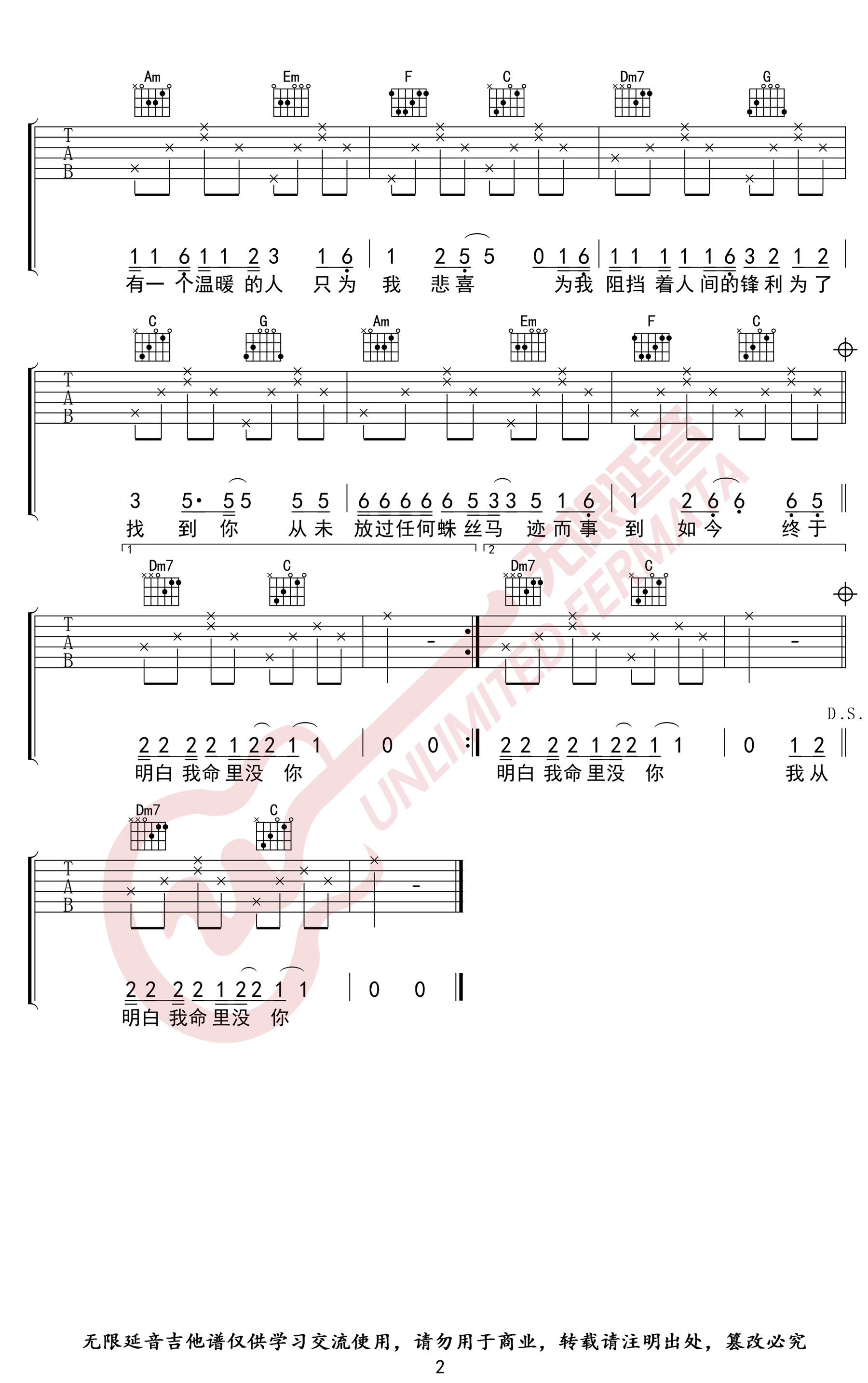 - 山楂树之恋吉他谱_大能人_C调_原版弹唱谱