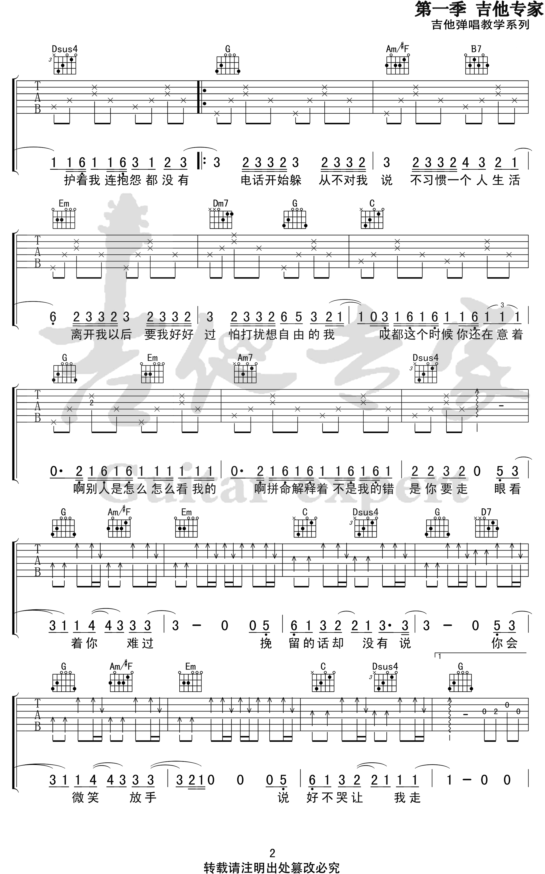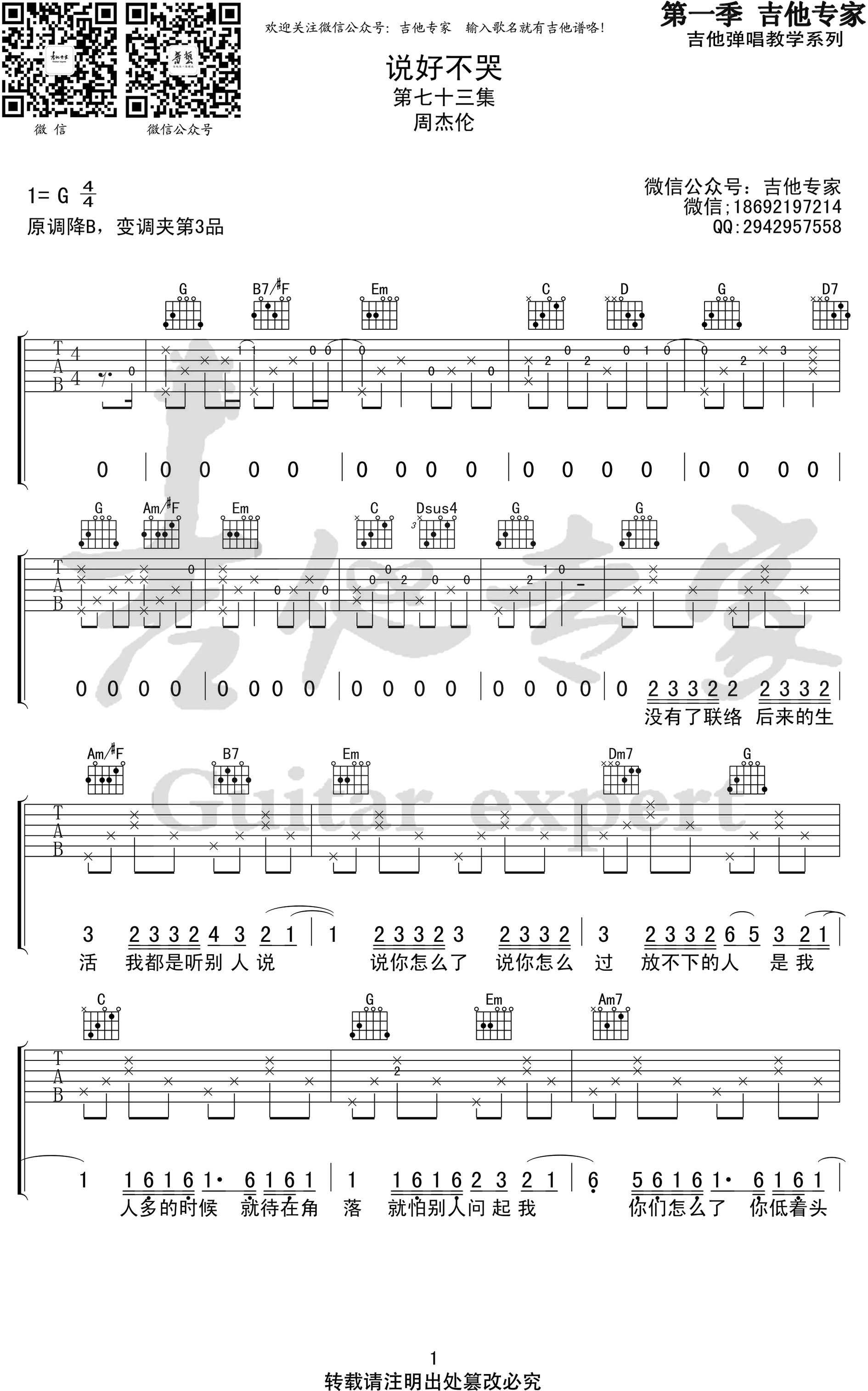 - 说好不哭吉他谱_周杰伦_G调_弹唱六线谱