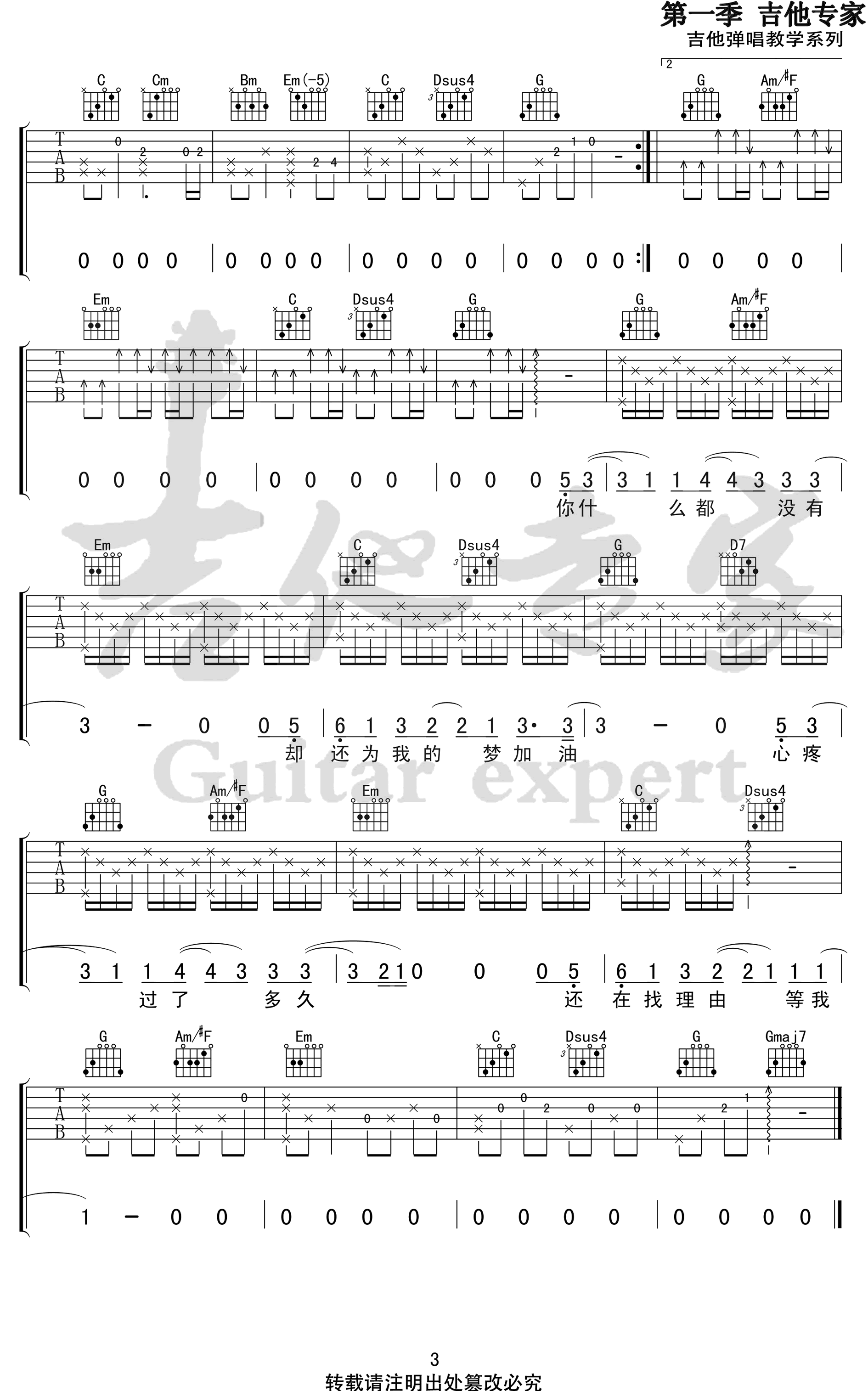 - 山楂树之恋吉他谱_大能人_C调_原版弹唱谱