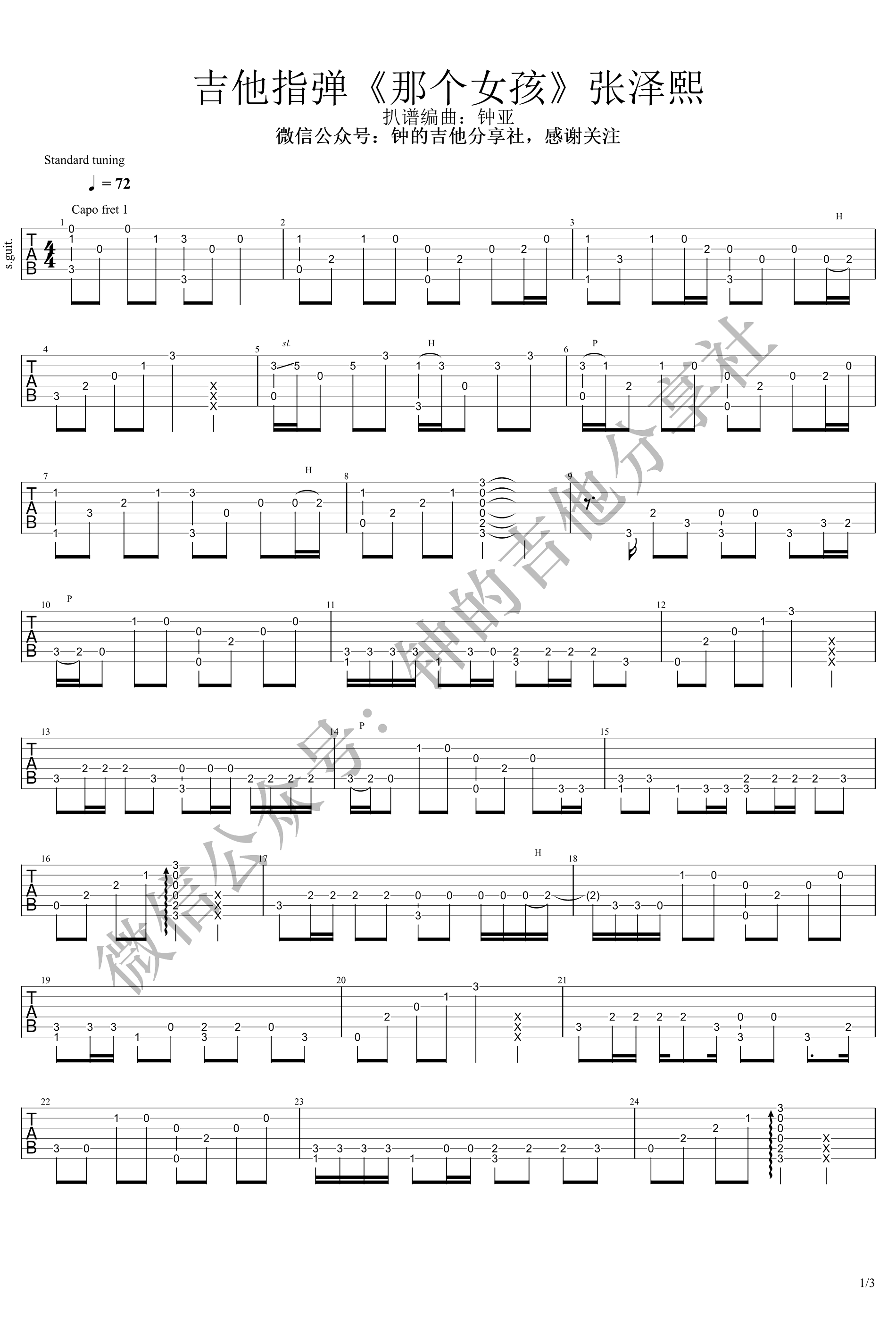 - 那个女孩指弹谱_张泽熙_吉他独奏谱_演示视频