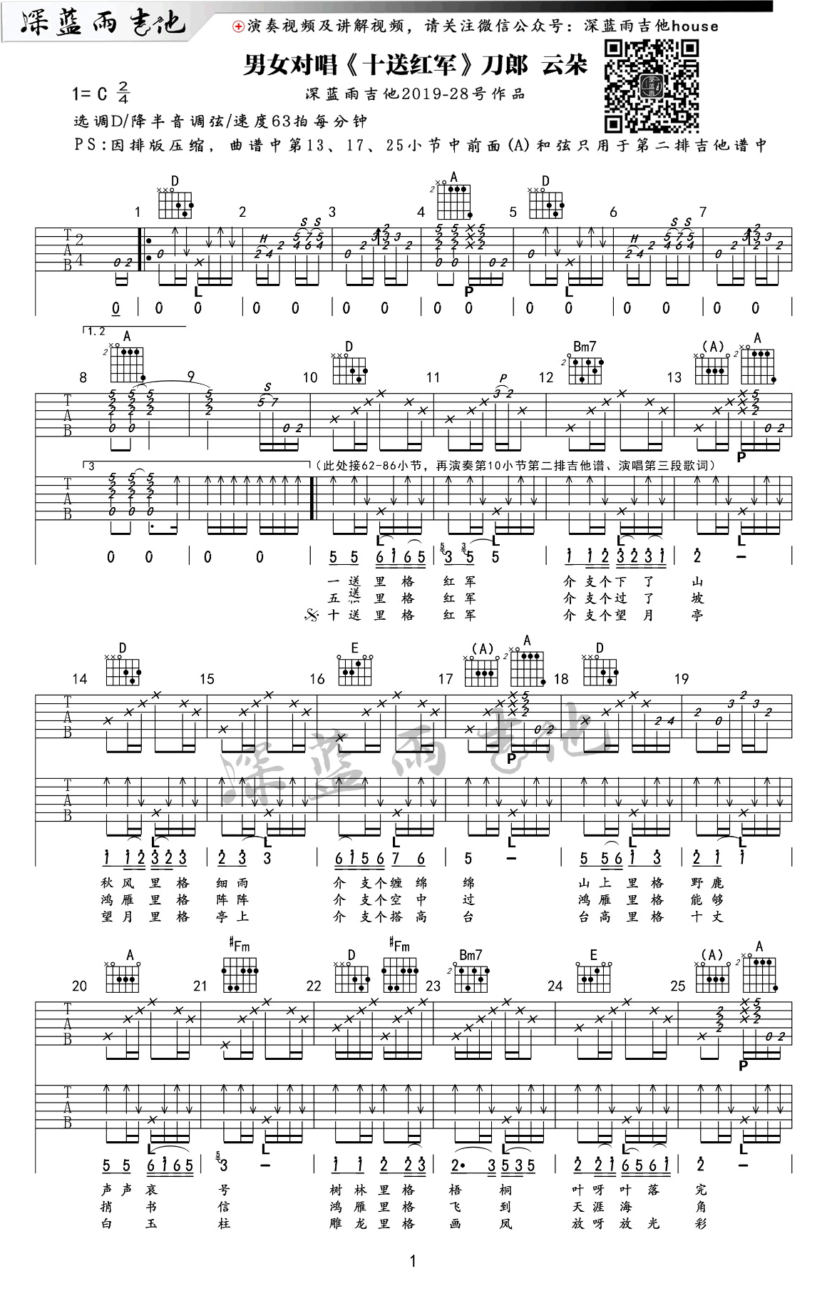 - 十送红军吉他谱_刀郎/云朵_D调_弹唱教学视频