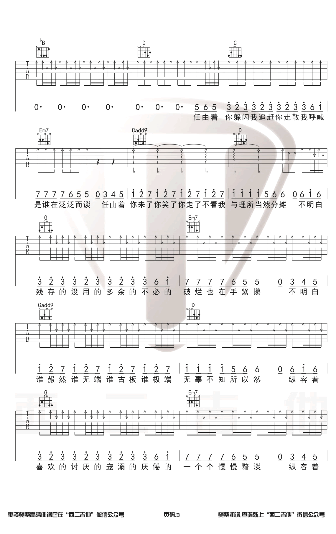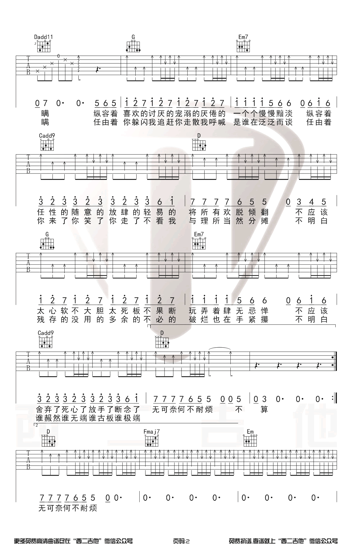 - 陈粒《大自在》吉他谱 高清图片谱 大自在六线谱
