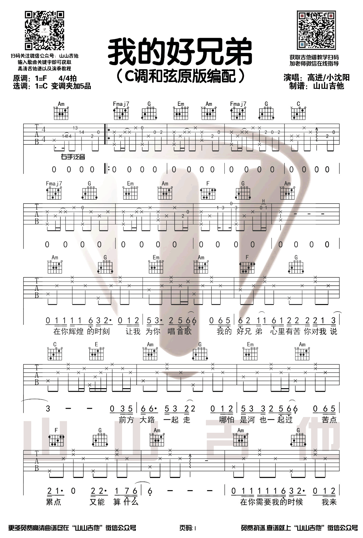 - 我的好兄弟吉他谱_高进/小沈阳_C调原版弹唱谱