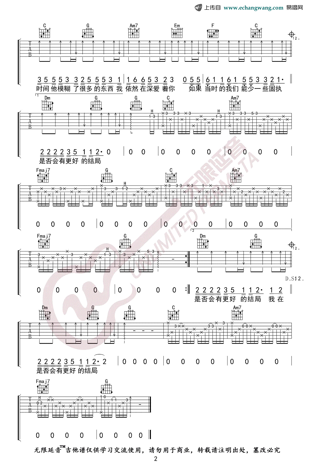 - 姚六一《隔岸》吉他谱_C调原版弹唱谱_吉他演示视频