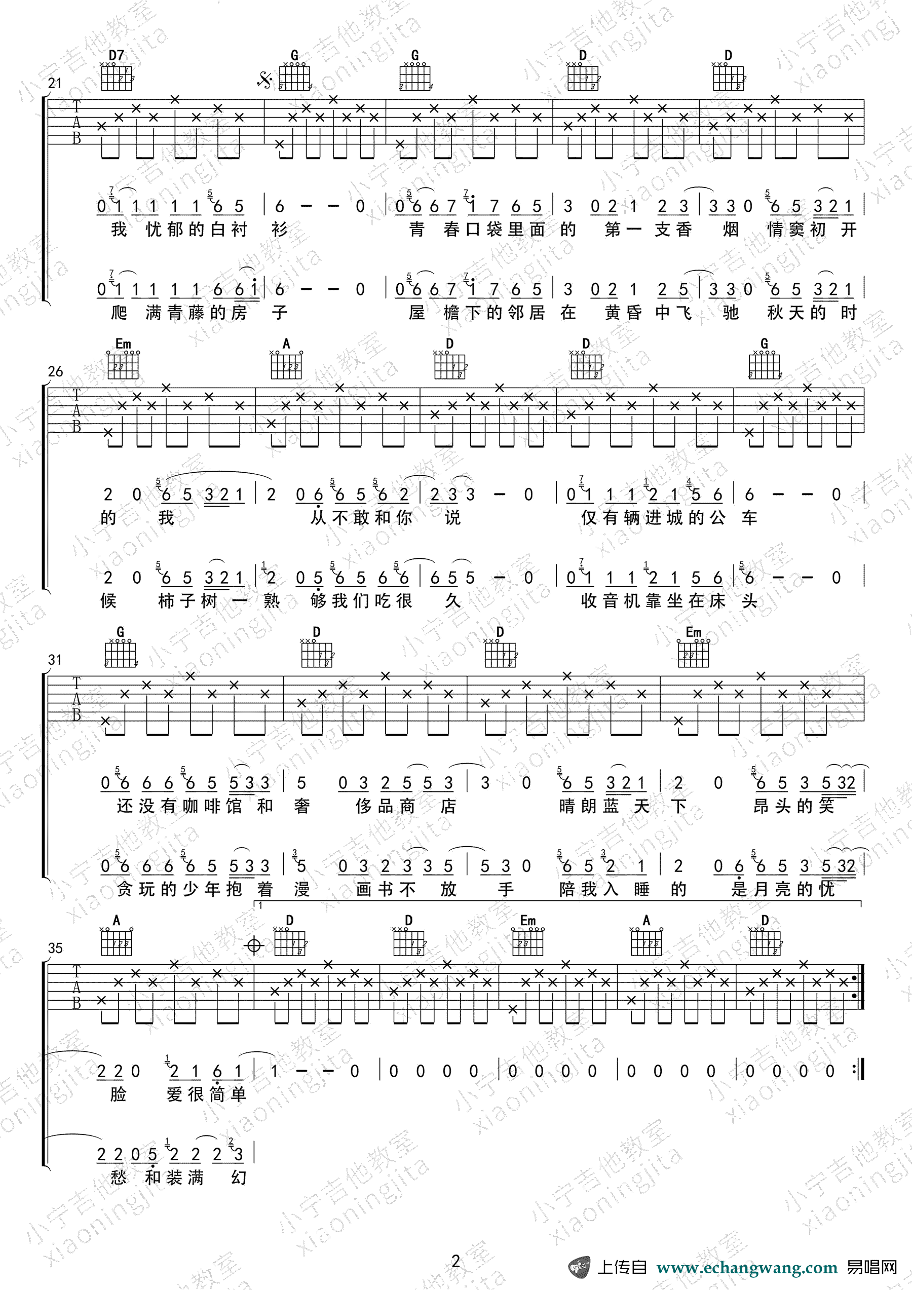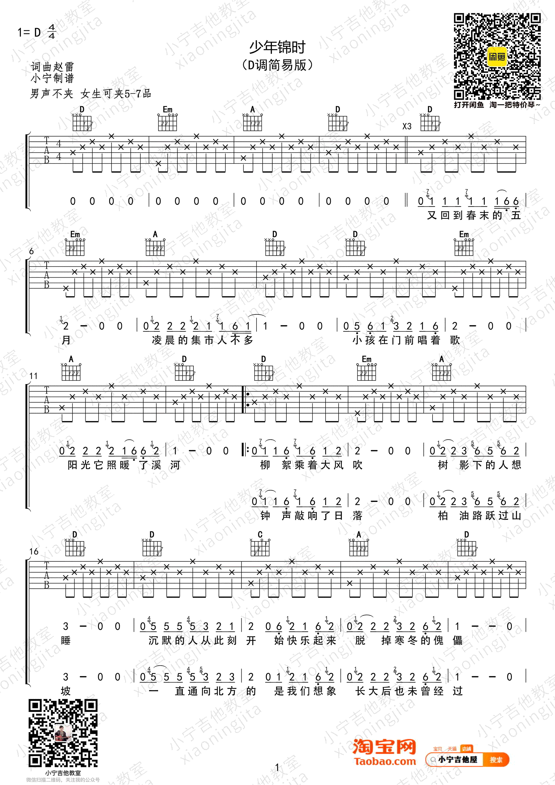 - 少年锦时吉他谱_赵雷_D调简易版_弹唱谱
