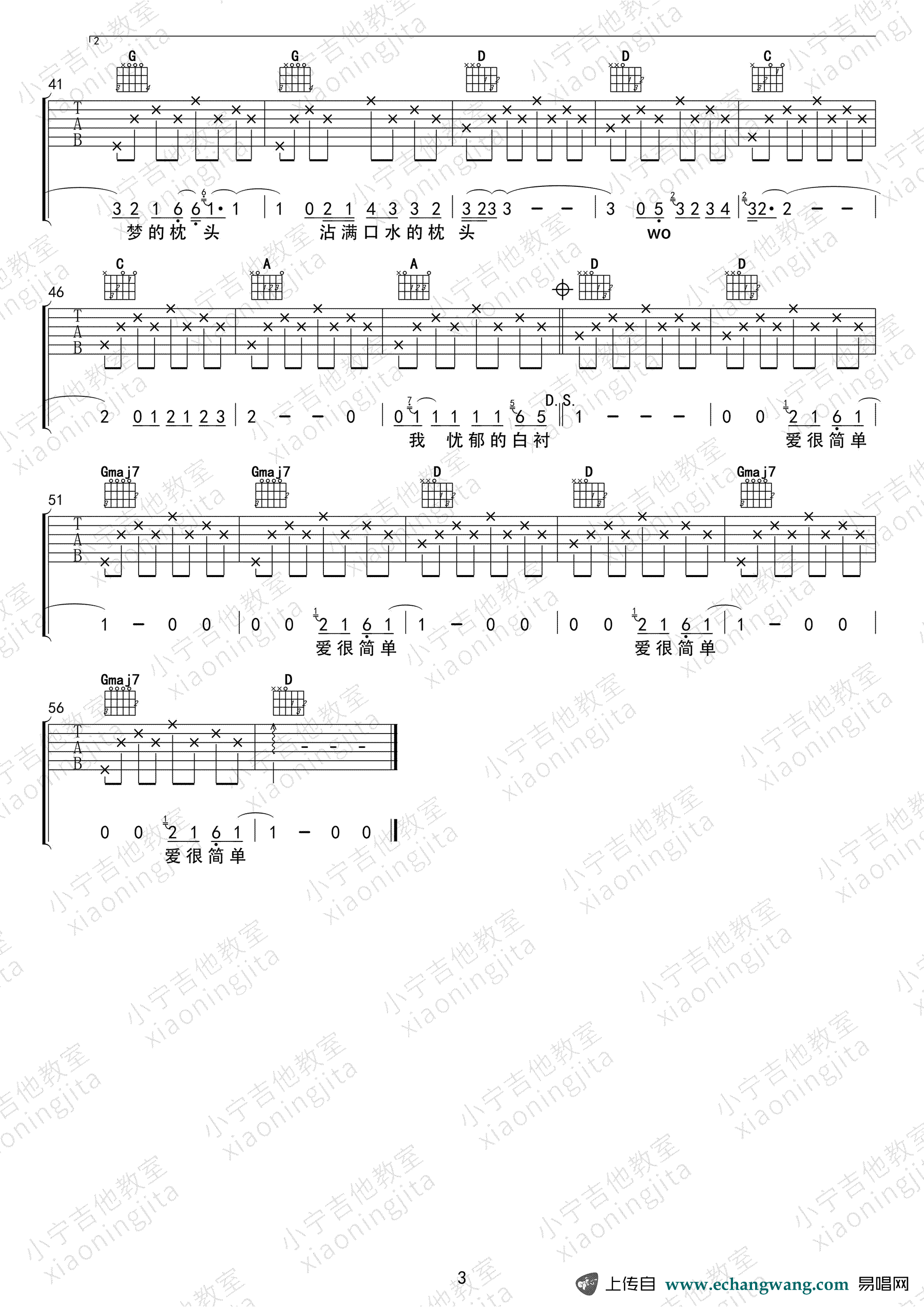 - 另一个天堂吉他谱_房东的猫_G调_弹唱六线谱