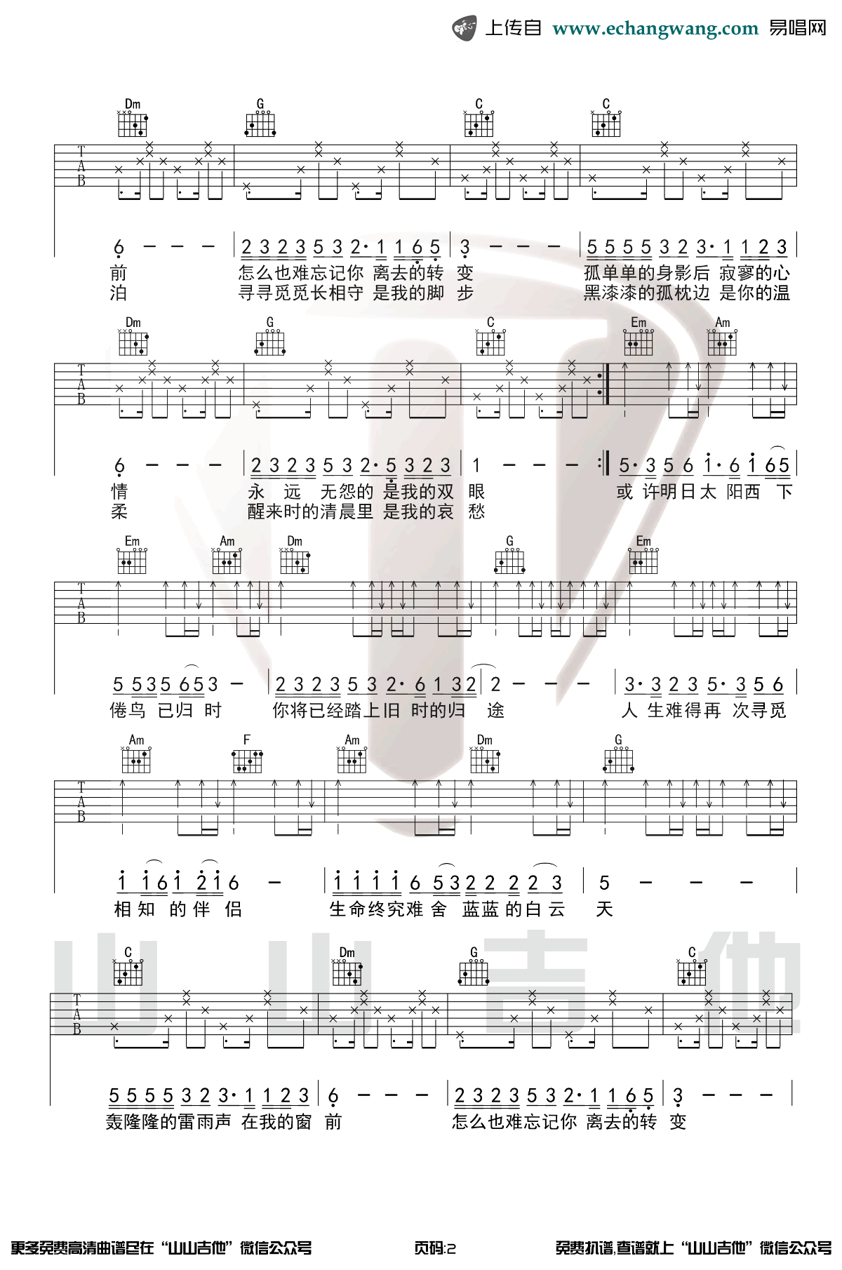 - 任然《飞鸟和蝉》吉他谱_C调指法_弹唱谱