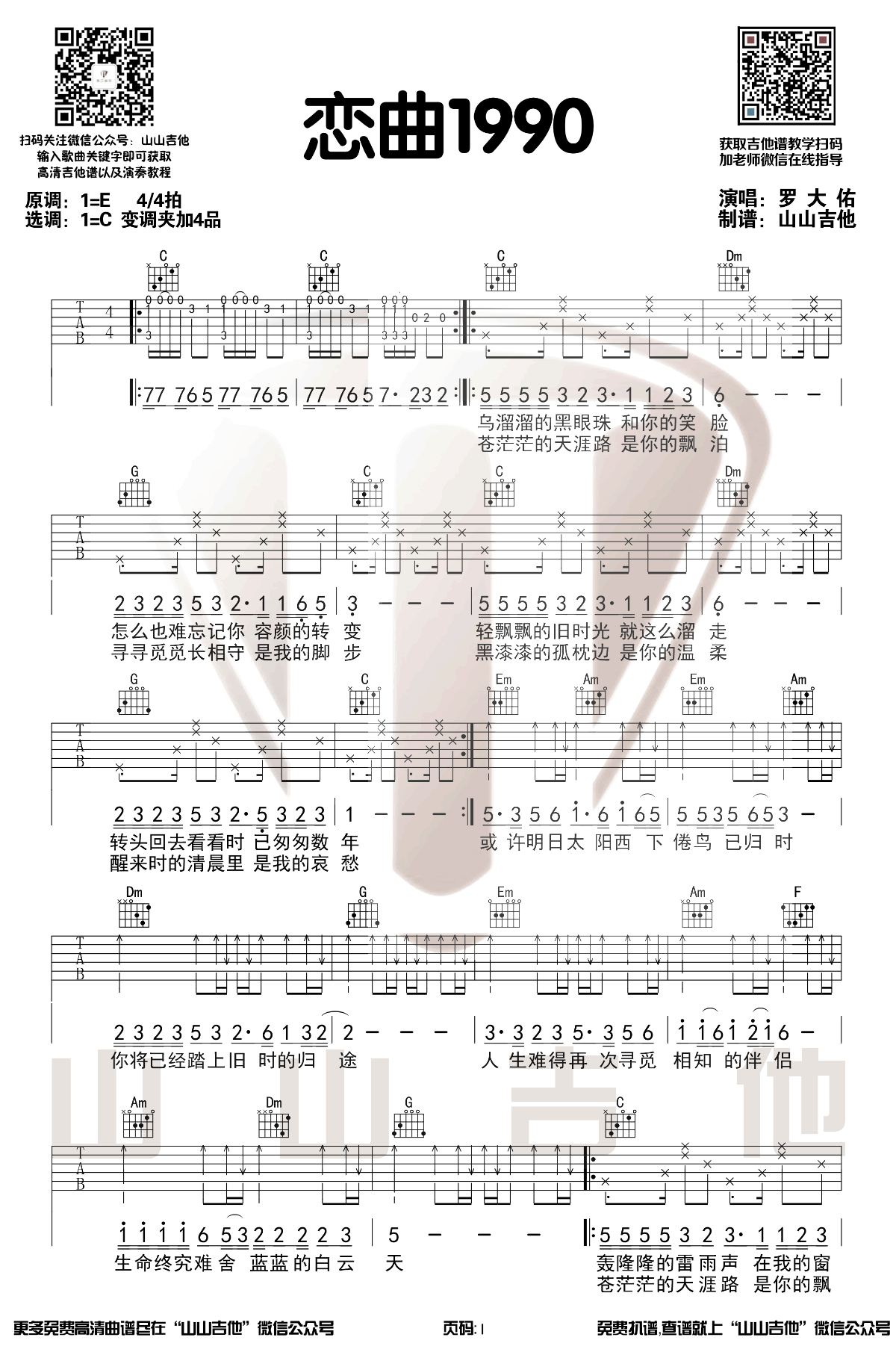 - 恋曲1990吉他谱_罗大佑_C调指法_《阿郎的故事》主题曲
