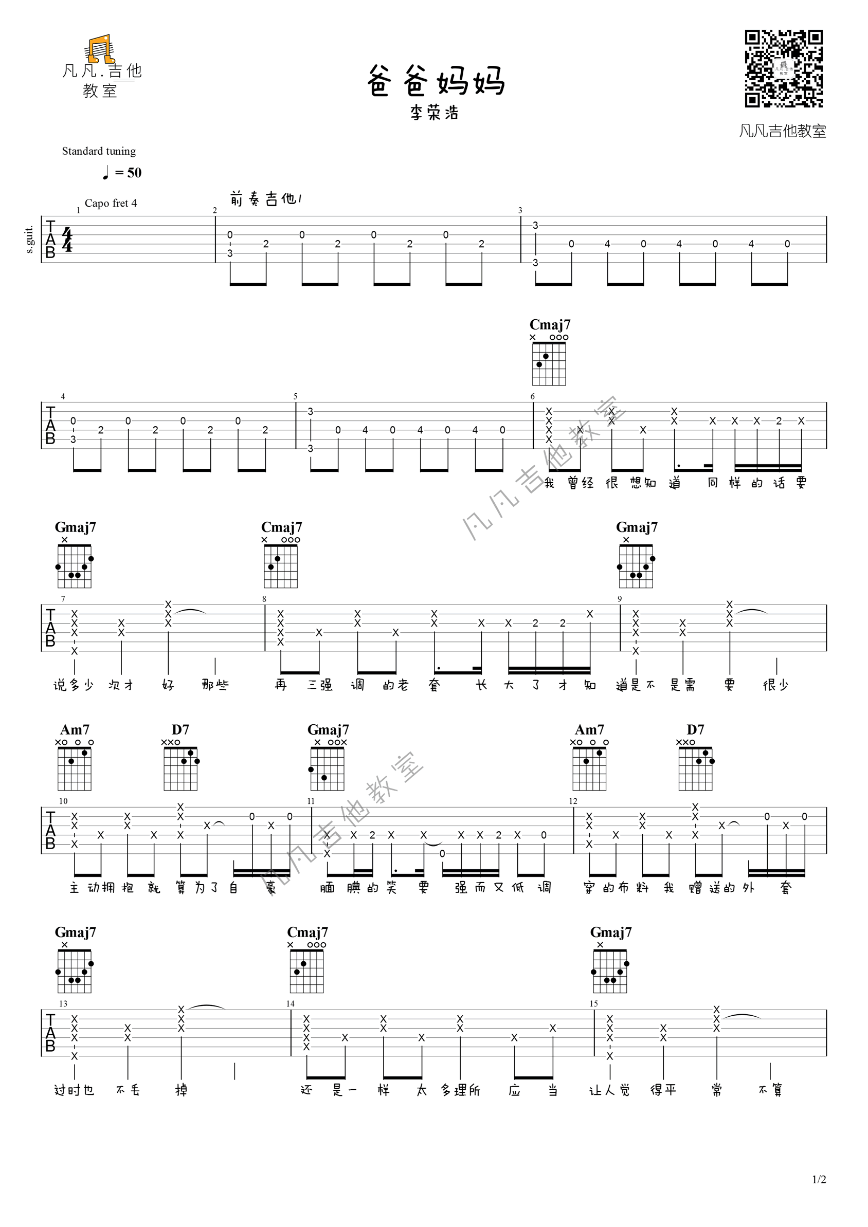 - 爸爸妈妈吉他谱_李荣浩_G调指法_弹唱演示视频
