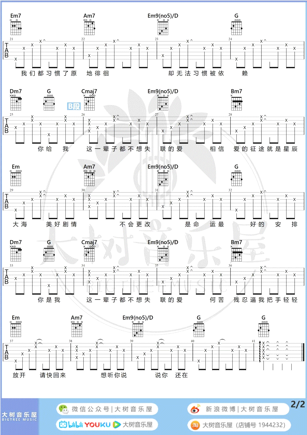- 薛之谦《天外来物》吉他谱_G调指法_图片谱