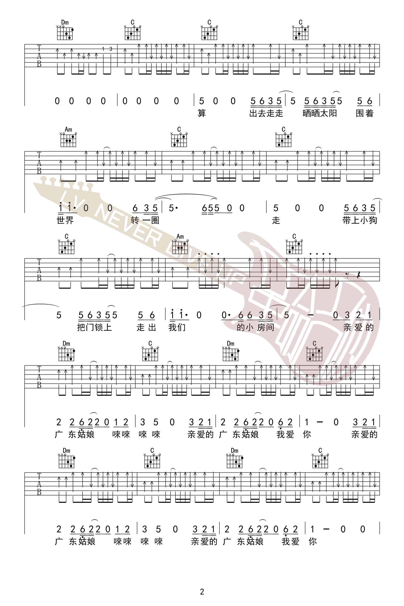 - 广东姑娘吉他谱_五条人_C调弹唱谱_完整六线谱