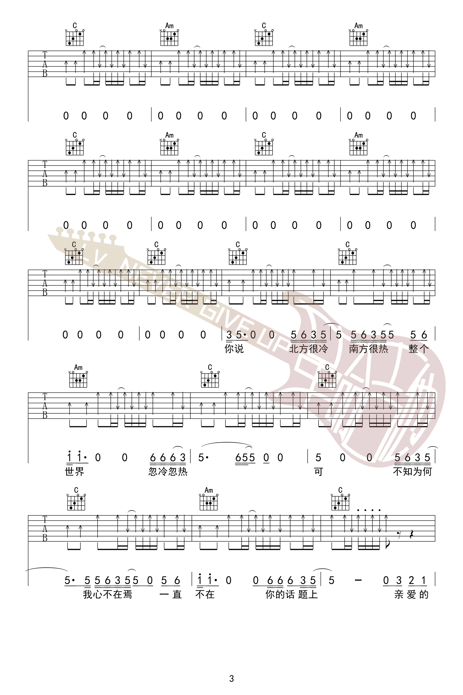 - 我不是你的宋冬野吉他谱_林启得_C调原版_带前奏间奏