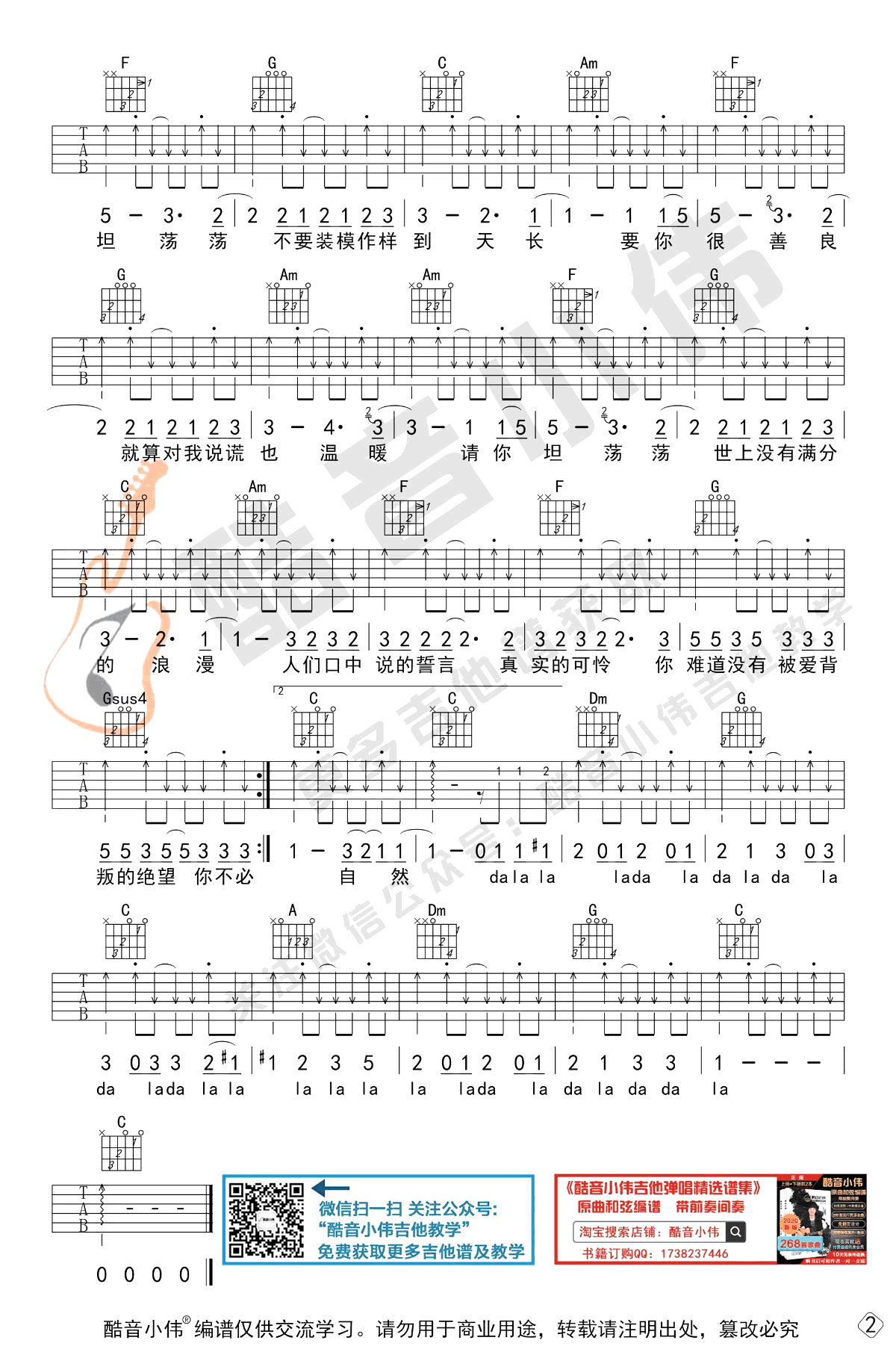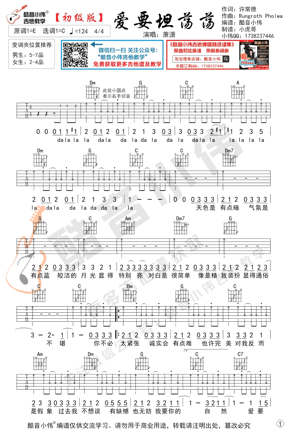 - 爱要坦荡荡吉他谱_丁丁_C调简单版_初级弹唱谱