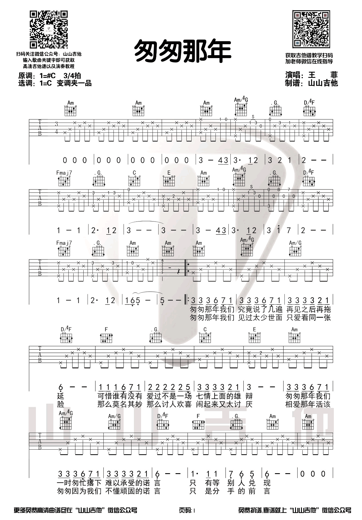 - 匆匆那年吉他谱_王菲_C调带原版前奏_弹唱演示视频