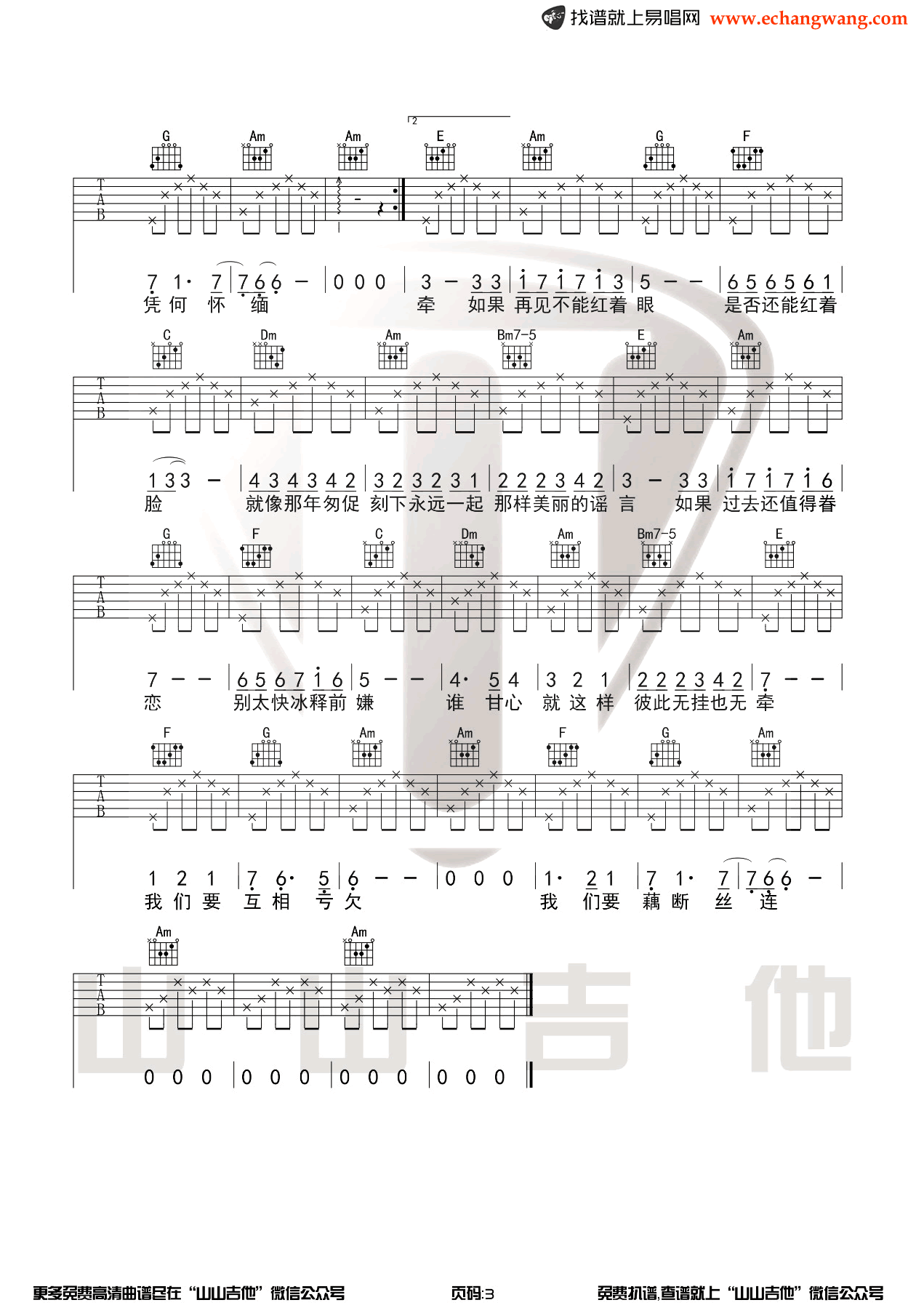 - 元若蓝《半情歌》吉他谱_G调_弹唱六线谱