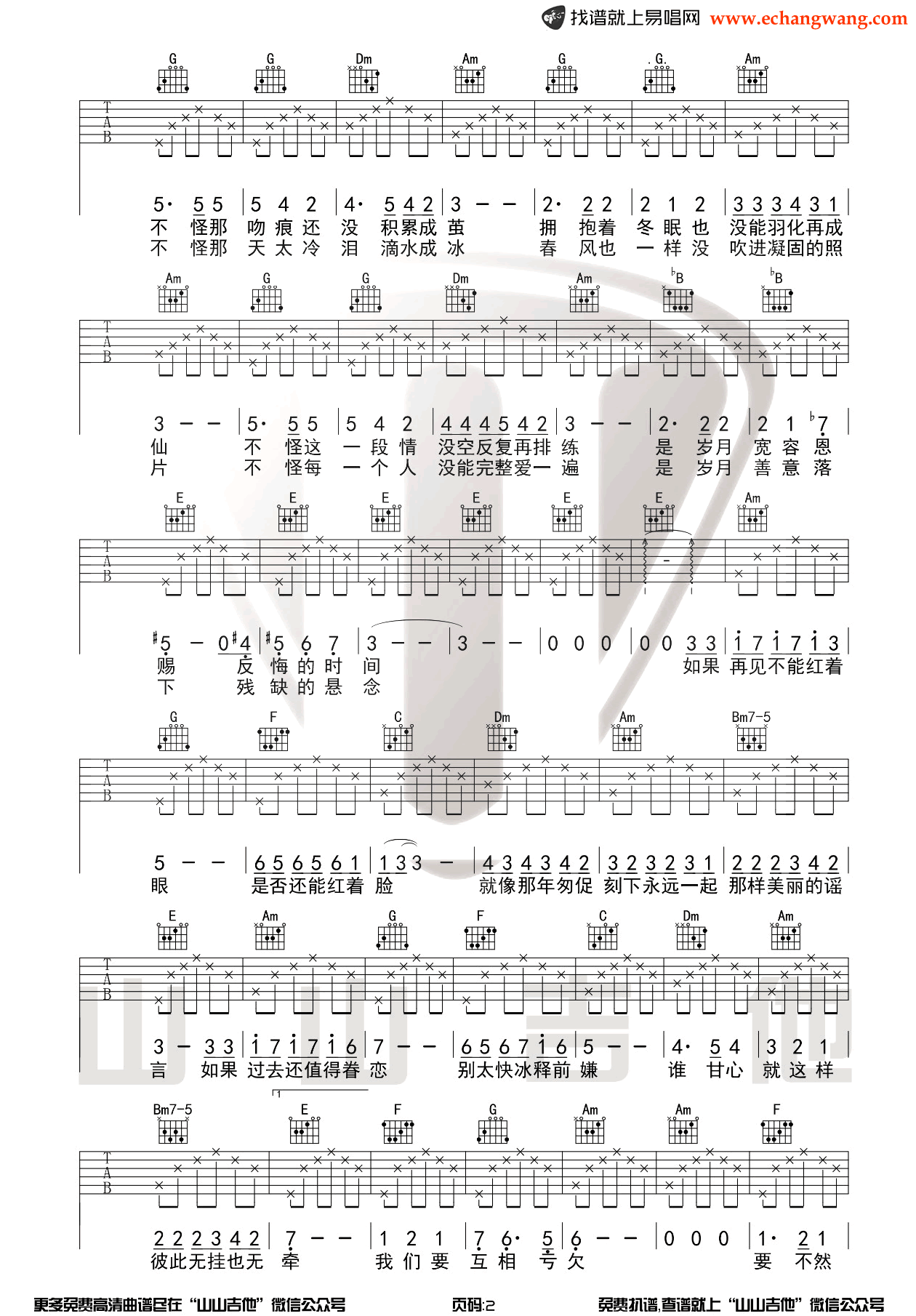 - 不爱我吉他谱_薛之谦_G调指法_弹唱谱