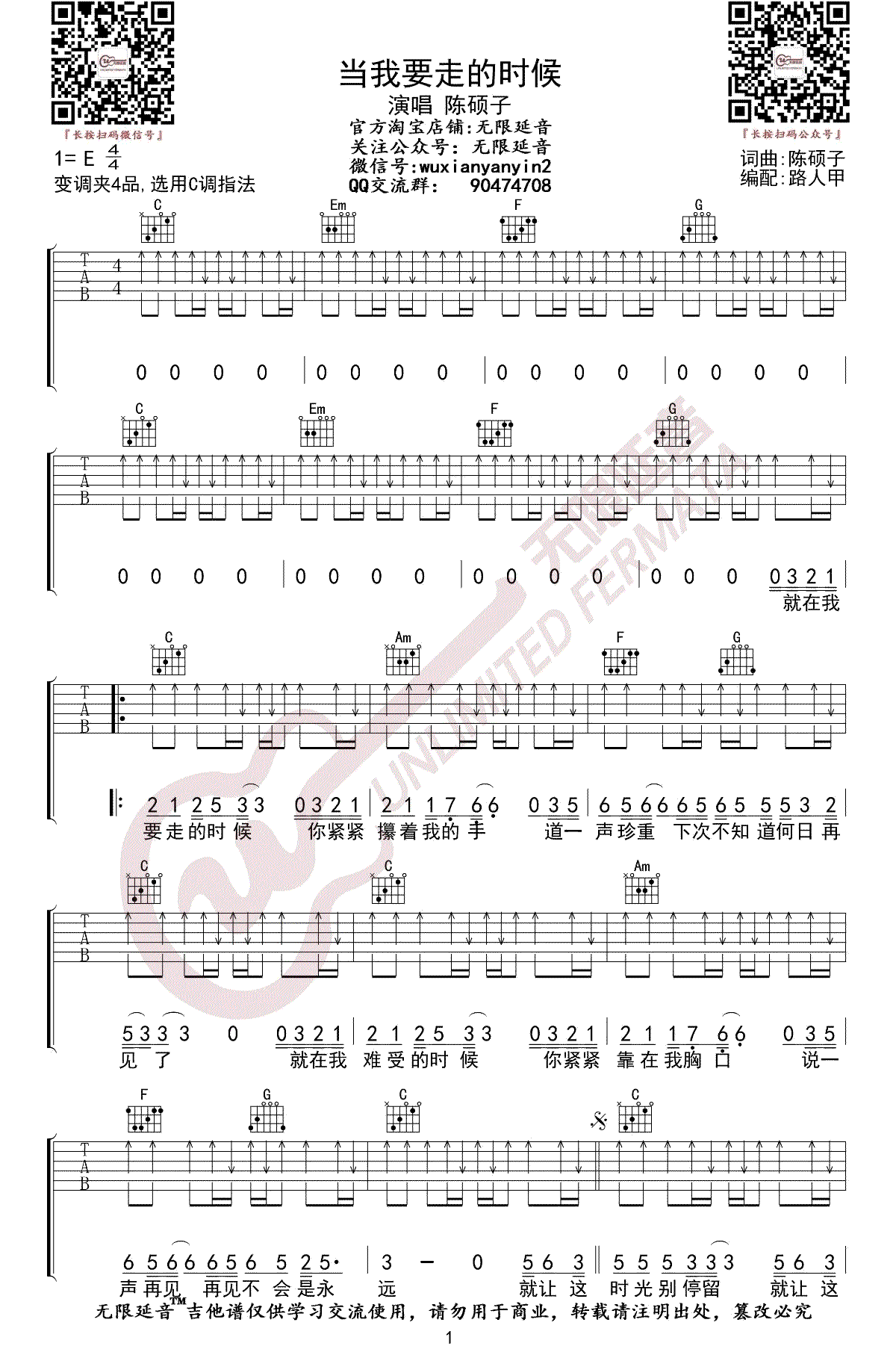 - 当我要走的时候吉他谱_陈硕子_C调弹唱谱