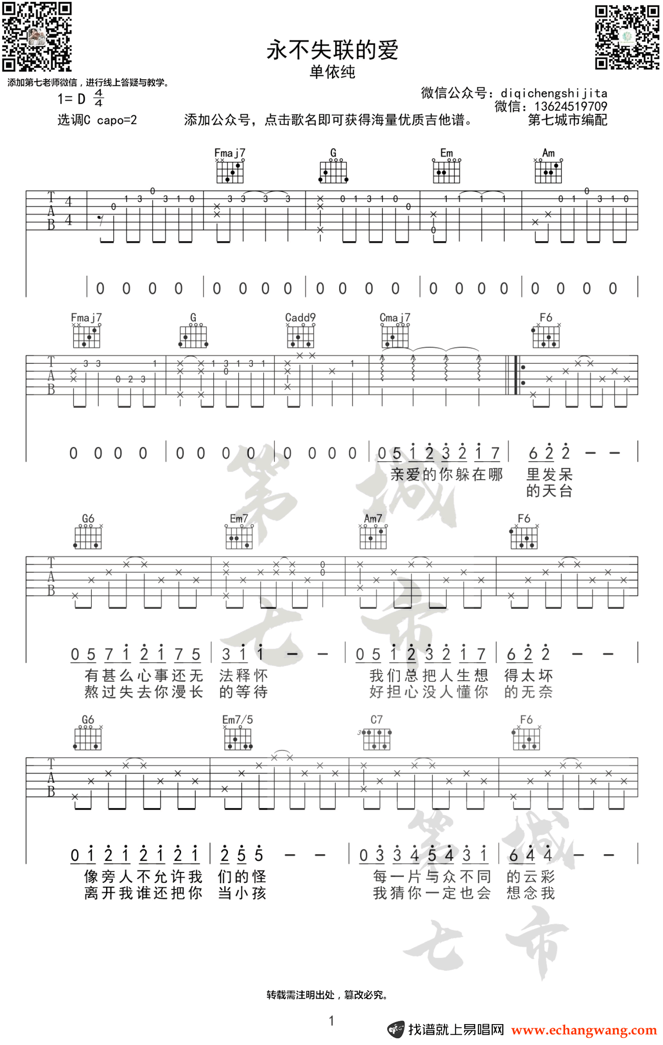 - 永不失联的爱吉他谱_单依纯/周兴哲_C调弹唱谱
