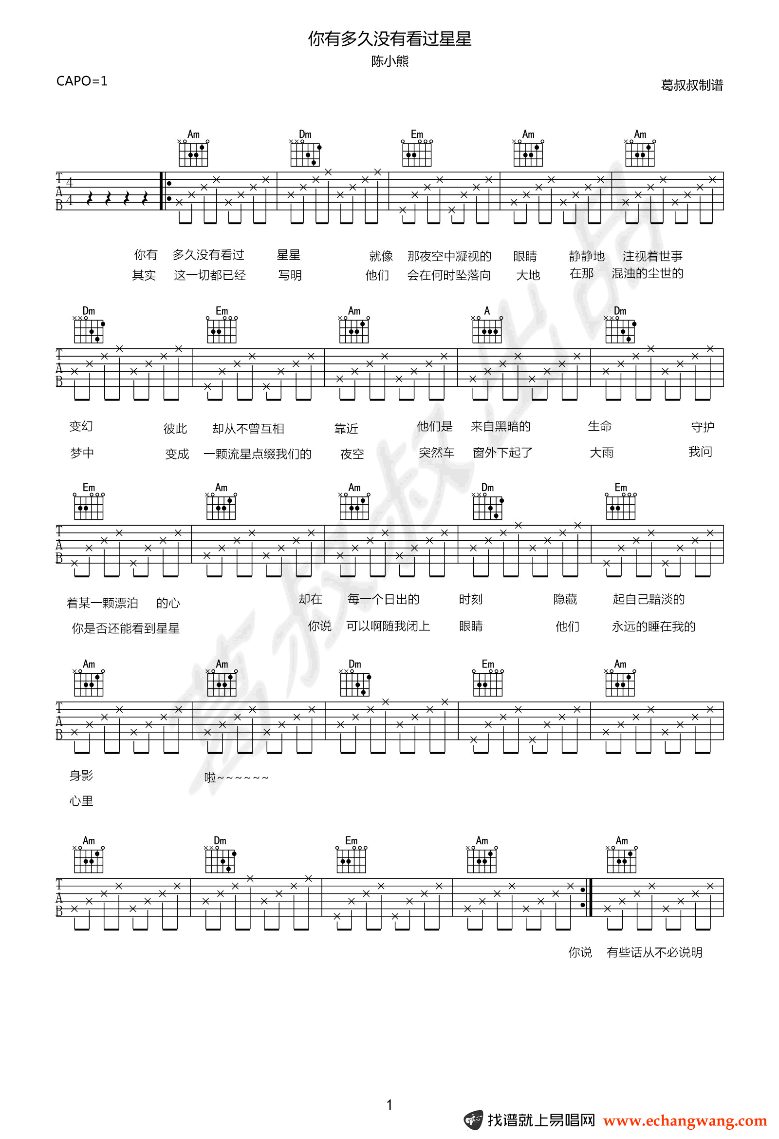- 你有多久没有看过星星吉他谱_陈小熊_弹唱谱