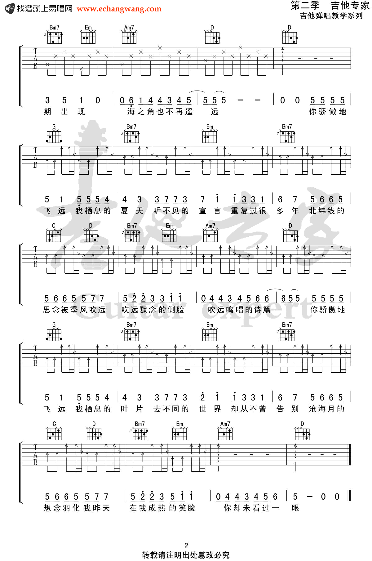 - 隔岸吉他谱_姚六一_C调_弹唱谱_高清完整版