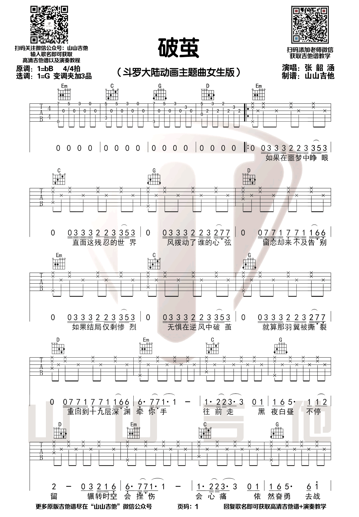 - 《破茧》吉他谱_张韶涵_G调弹唱谱_斗罗大陆主题曲