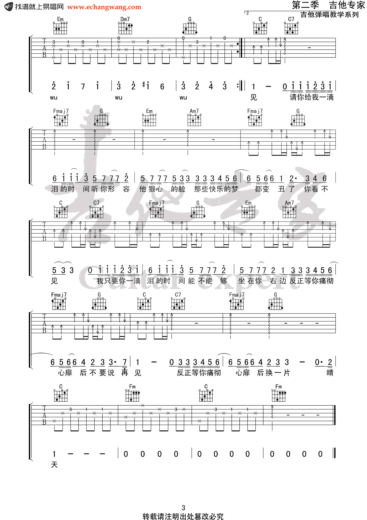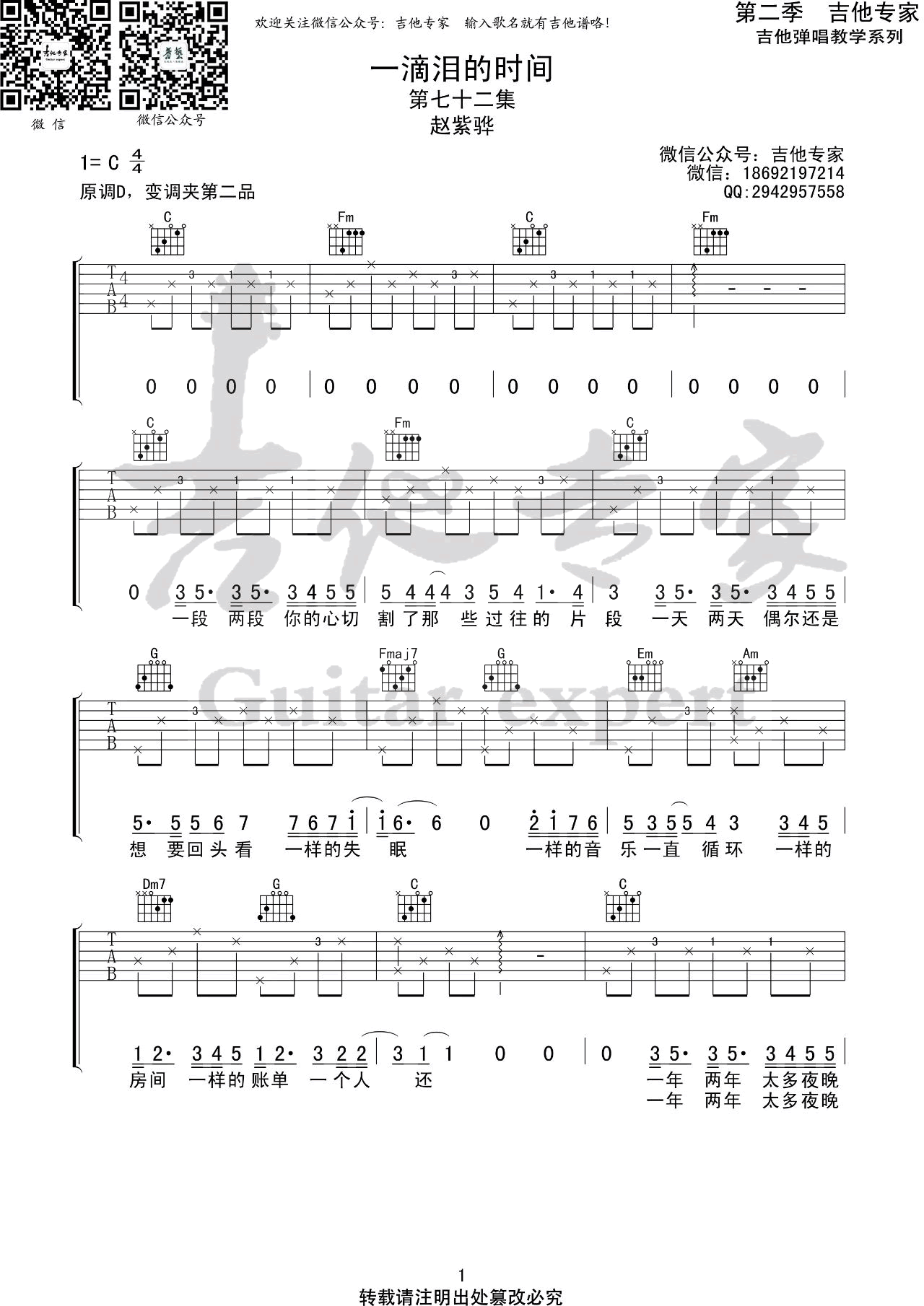 - 一滴泪的时间吉他谱_赵紫骅_C调弹唱谱_中国好声音