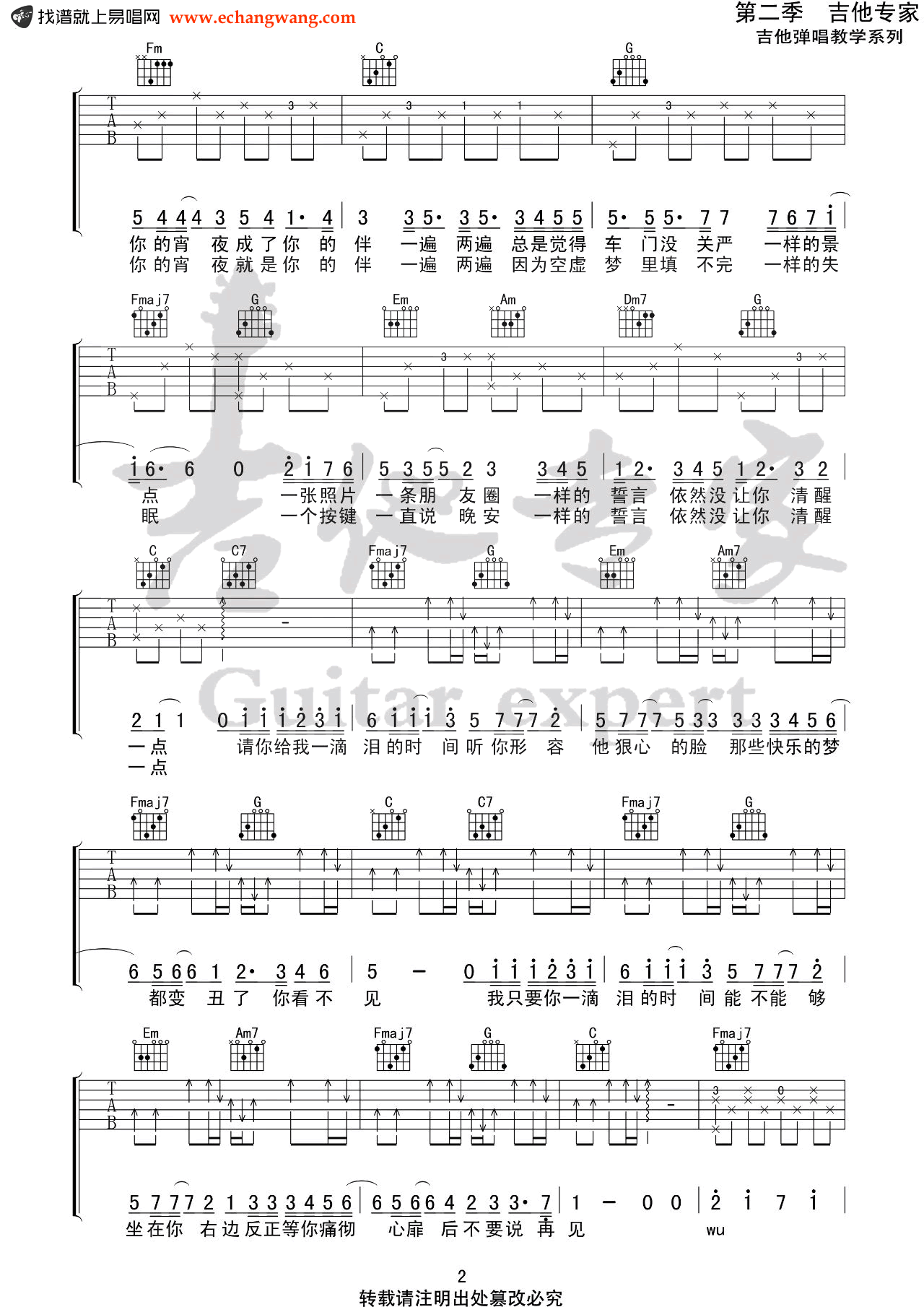- 谁不是吉他谱_金池_C调指法_弹唱六线谱