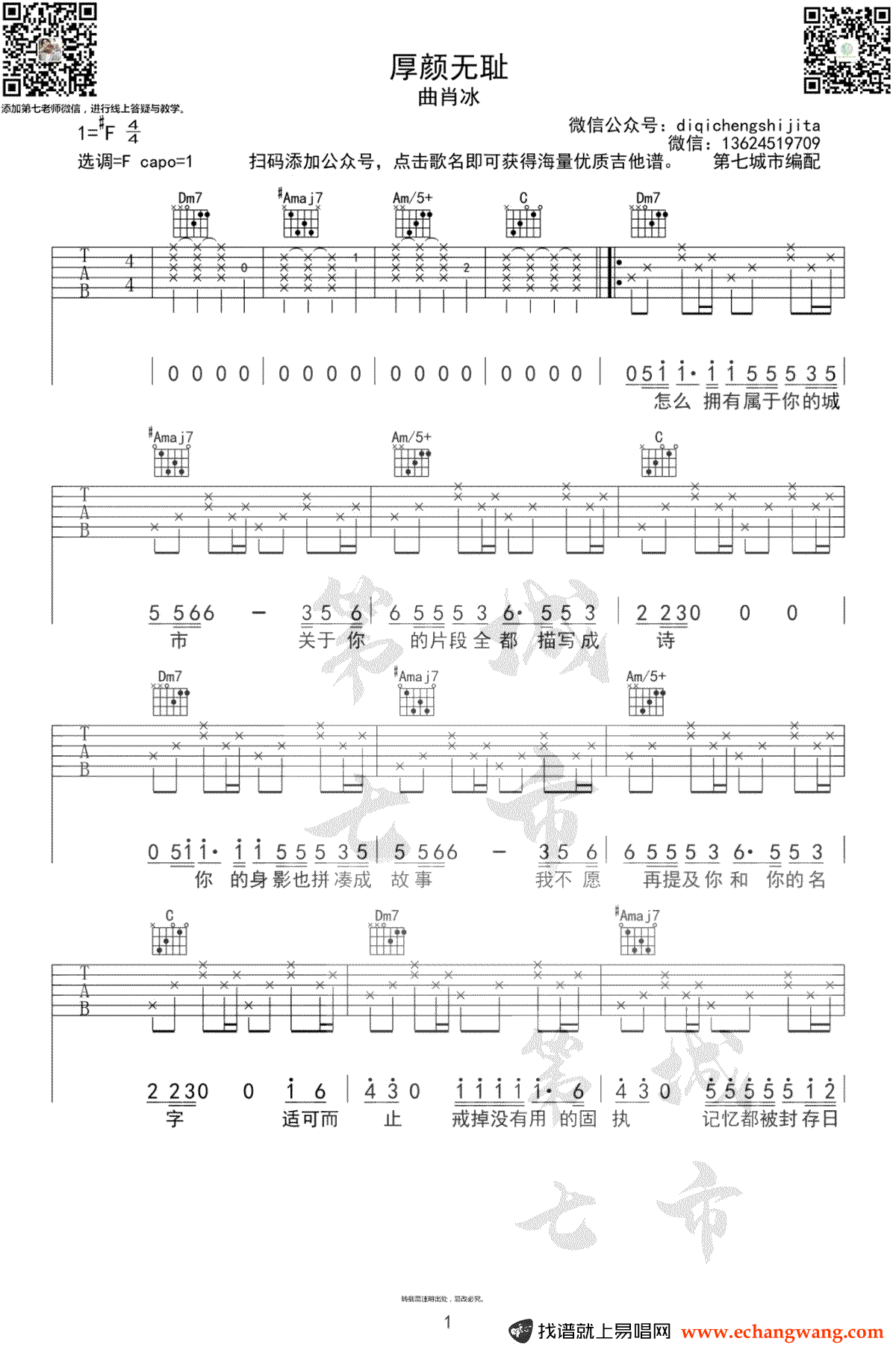 - 厚颜无耻吉他谱_曲肖冰_弹唱六线谱