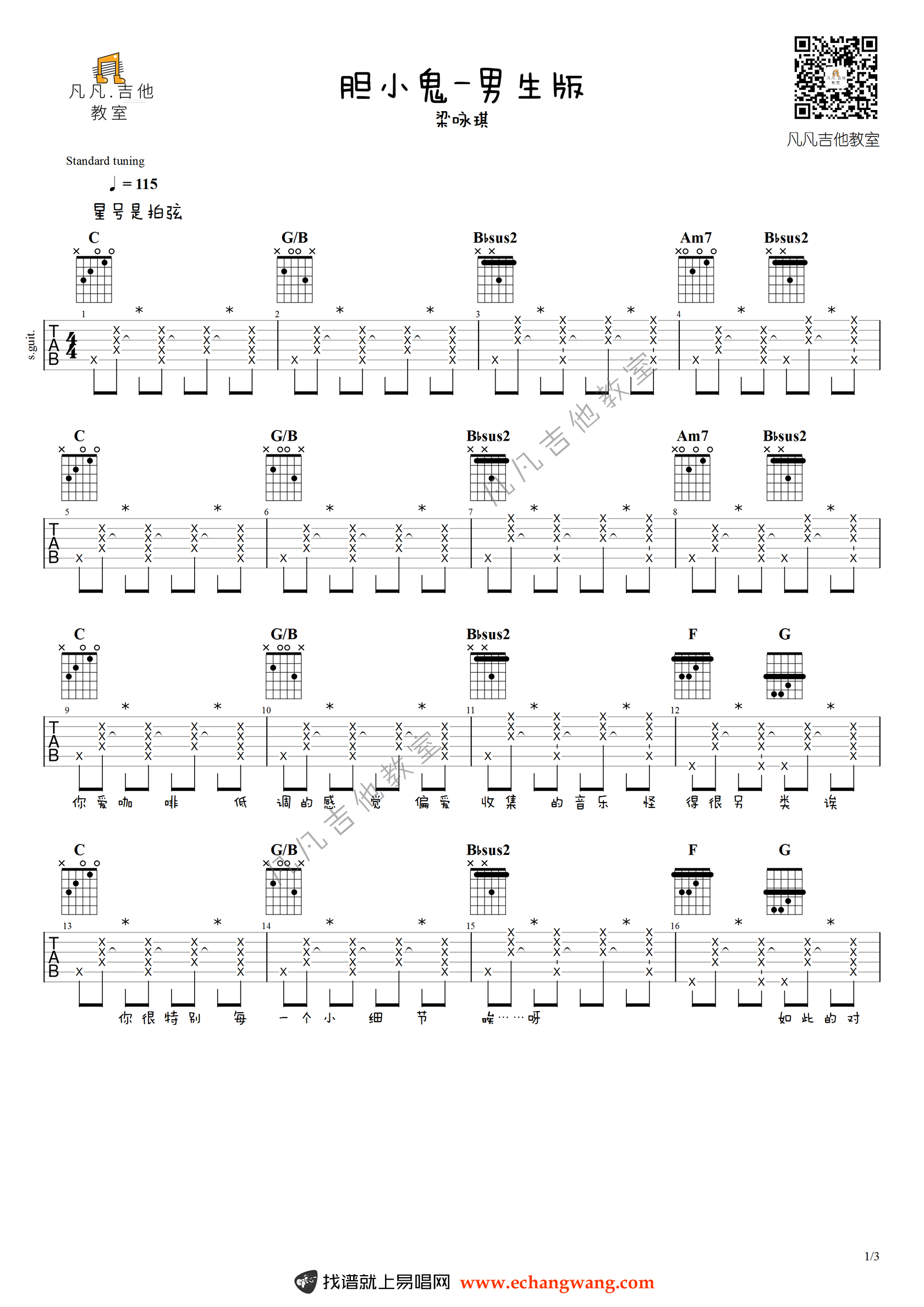 - 胆小鬼吉他谱_C调男生版_梁咏琪_吉他演示视频
