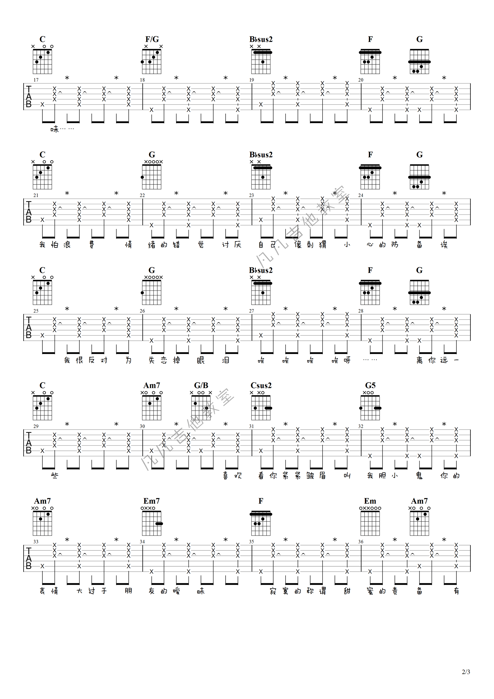 - 有点甜吉他谱_汪苏泷/BY2_C调_弹唱谱