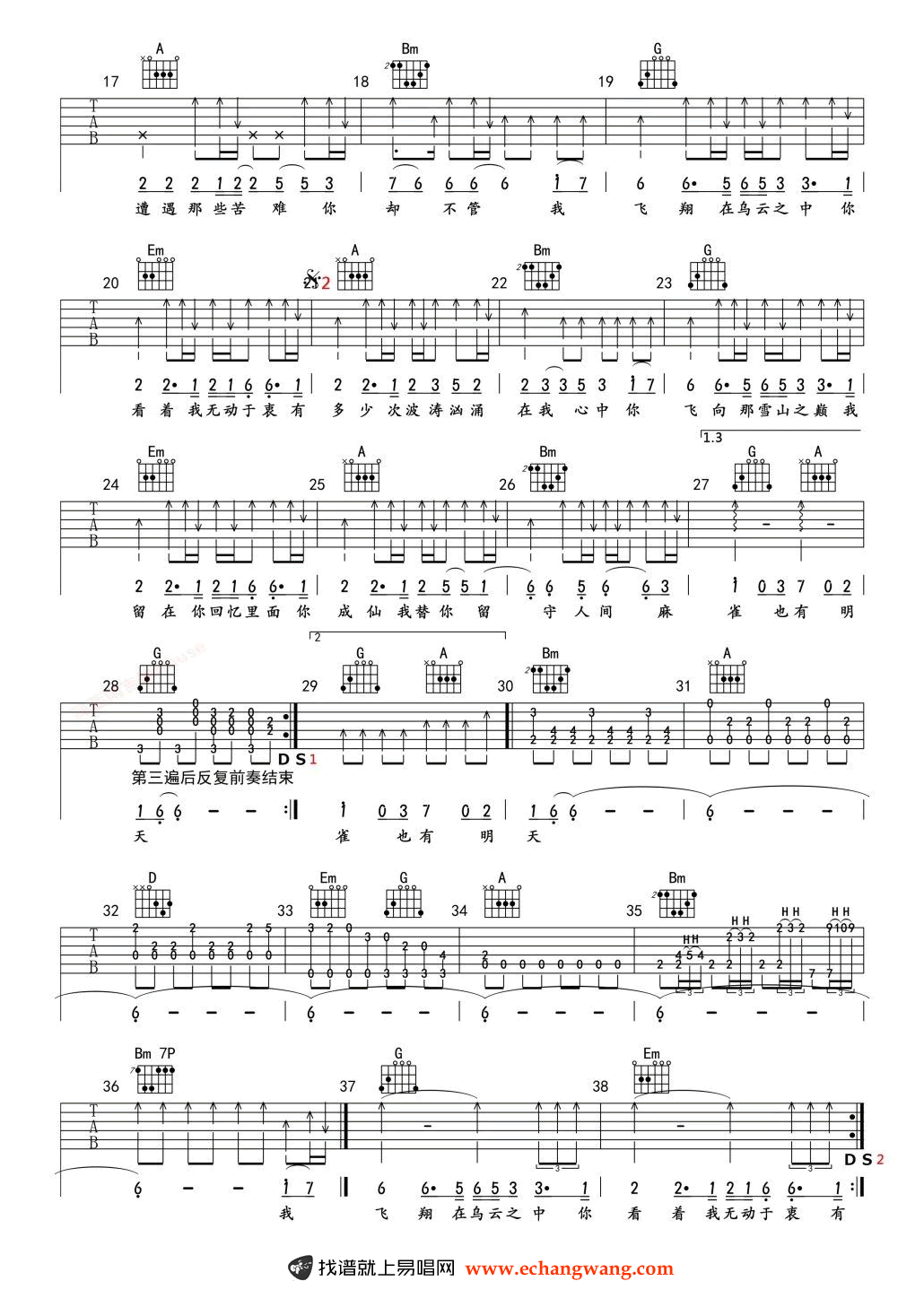 - 任然《飞鸟和蝉》吉他谱_C调指法_弹唱谱