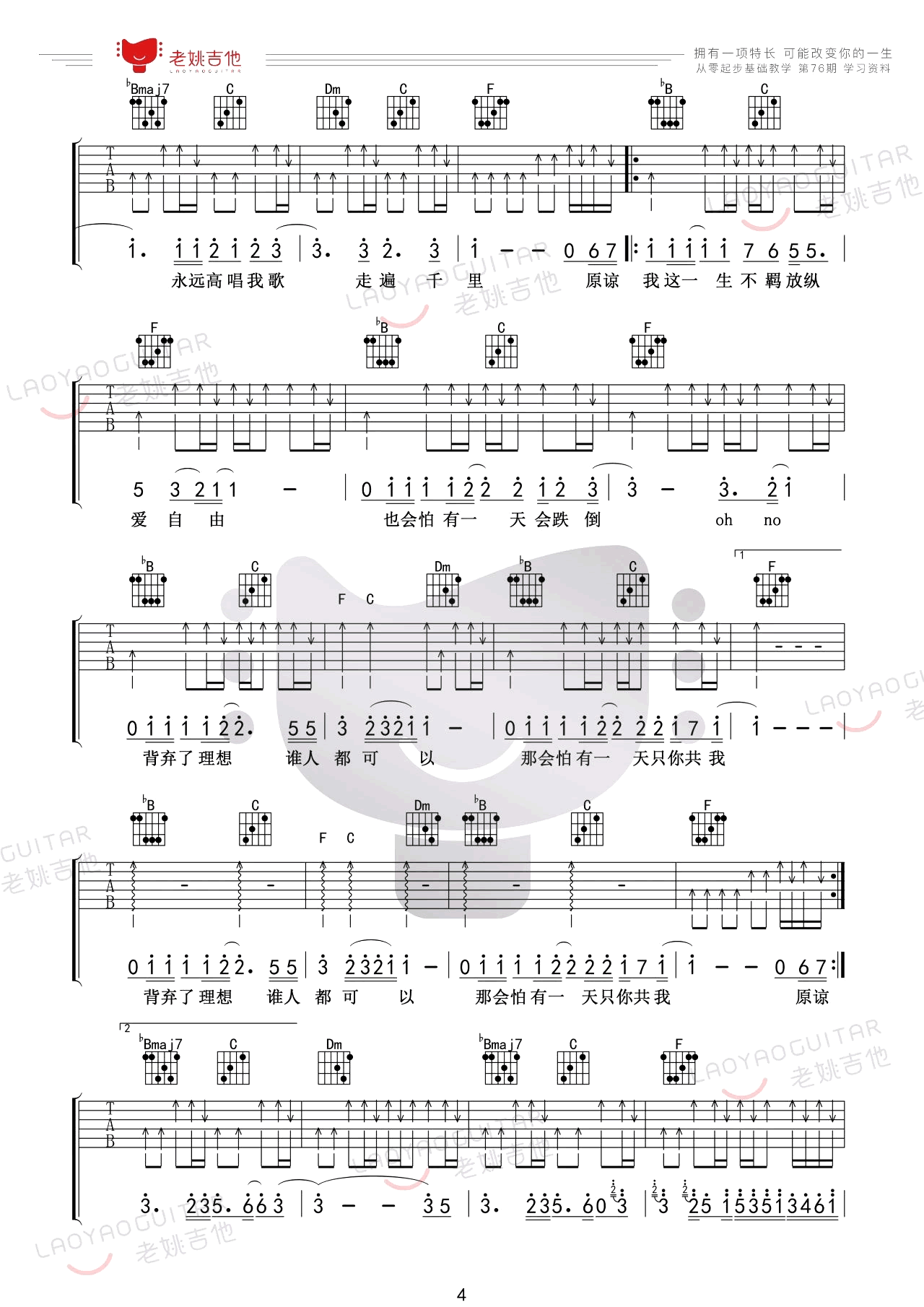 - 海阔天空吉他谱_Beyond_C调弹唱_吉他教学视频