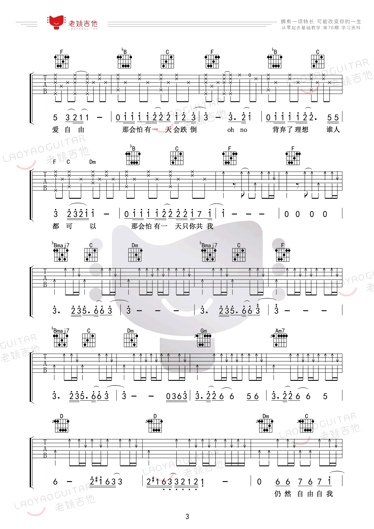 本次教学配合F调练习和六度音程等知识点。同步附上《海阔天空》吉他弹唱教学视频,琴友们参照老师的示范讲解进行学习。