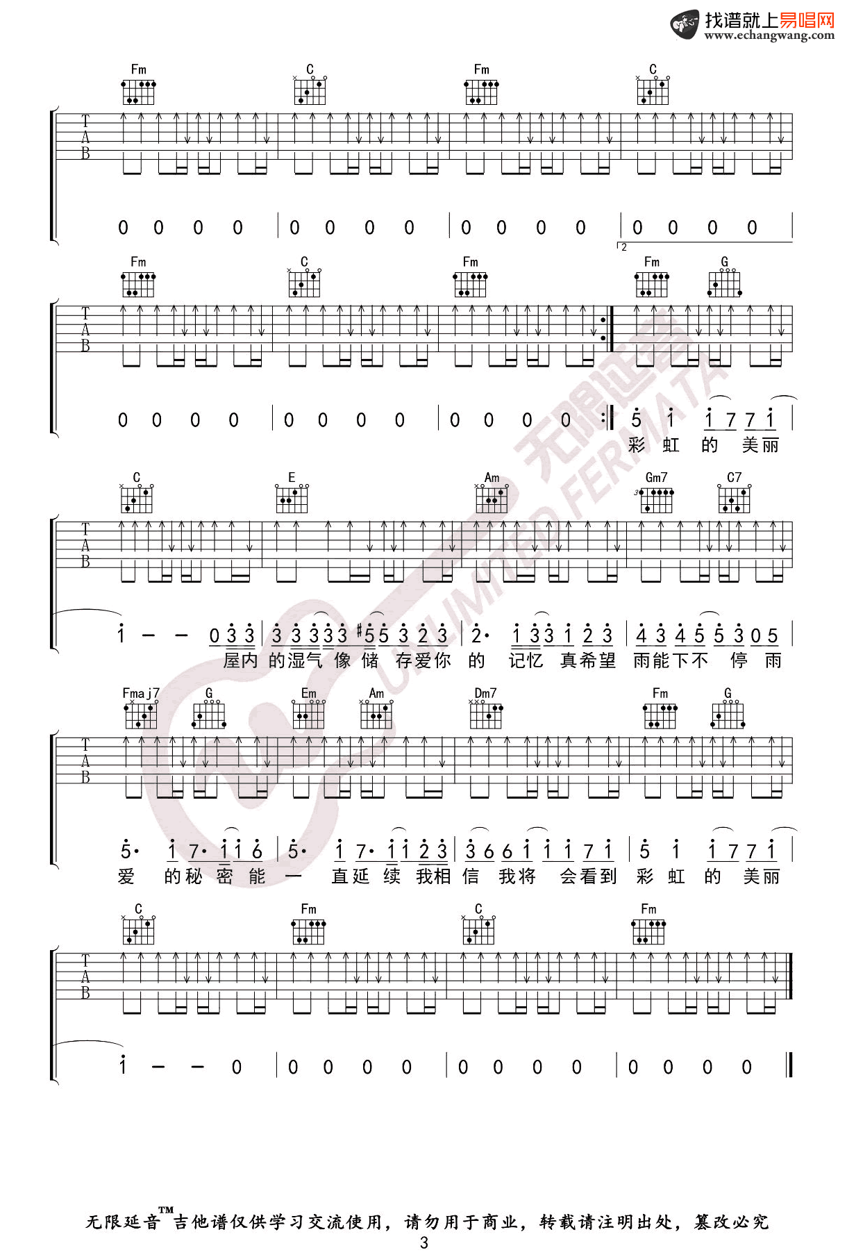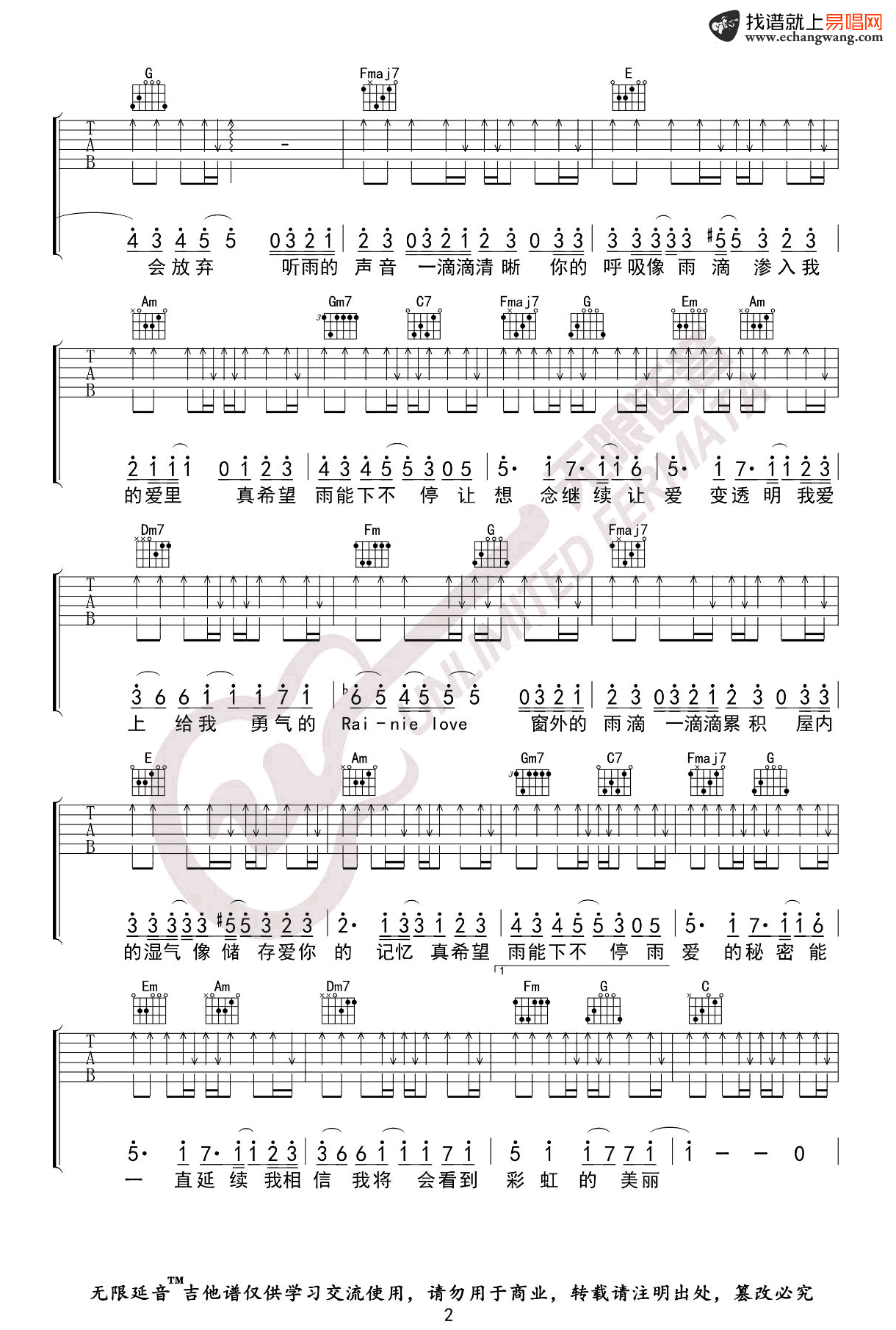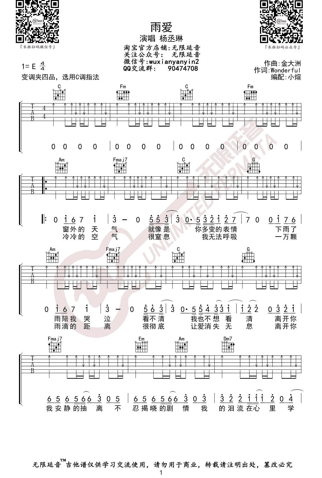 - 雨爱吉他谱_杨丞琳_C调指法_弹唱六线谱