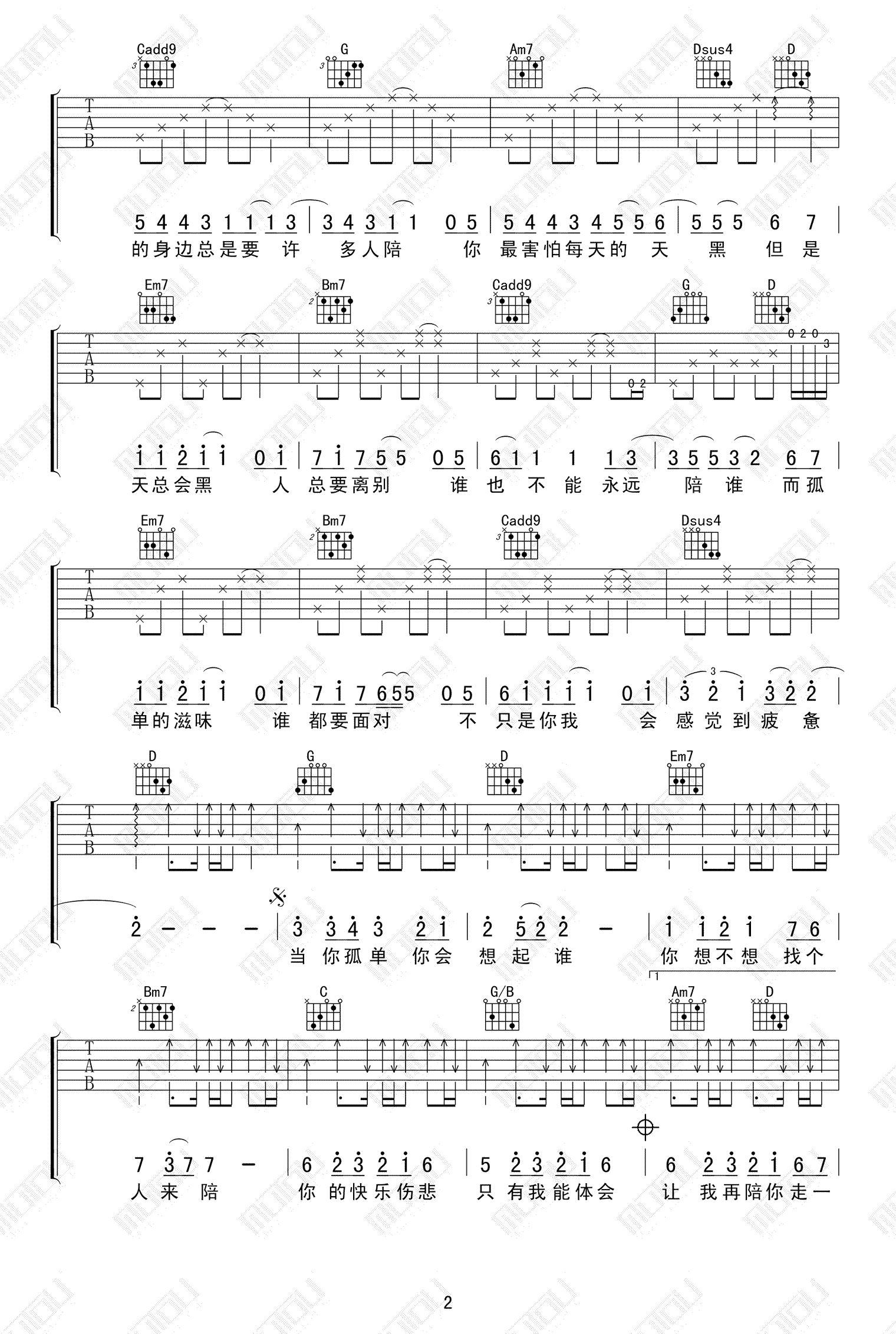 - 当你孤单你会想起谁吉他谱_G调原版_张栋梁